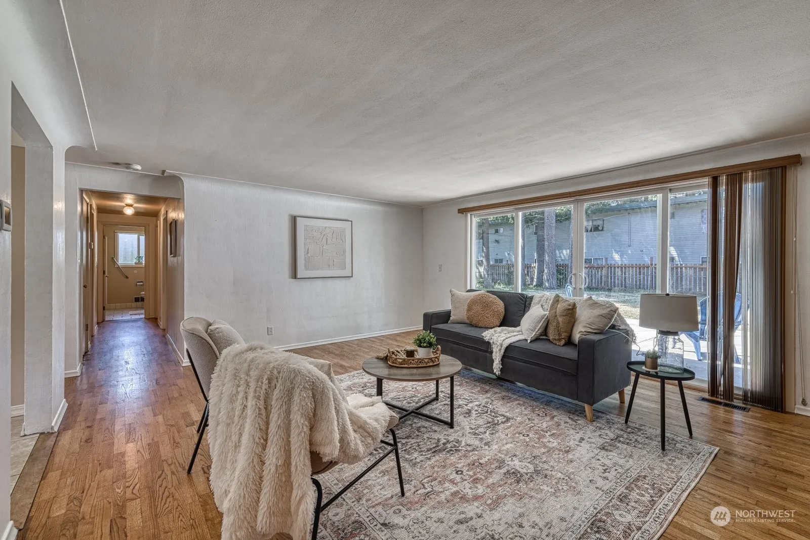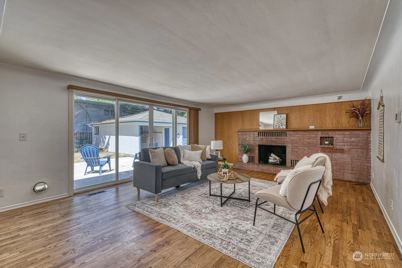 Welcome to this charming 4 bedroom and 2 bath rambler on a large lot with hardwood floors and a beautiful masonry fireplace. This home features plenty of kitchen space with a gas range and an eat-in kitchen. Off the kitchen you will enter into an impressive living room with a cozy brick fireplace and plenty of natural light provided by new double sliding glass doors that lead to an outdoor sitting area. Beyond the kitchen you will also find a bonus room that is great for entertainment and enjoyment. The detached garage includes a spacious workshop. The fully fenced large backyard is perfect for BBQ’s and fun. Close to shopping, I-5 access, area parks & JBLM.