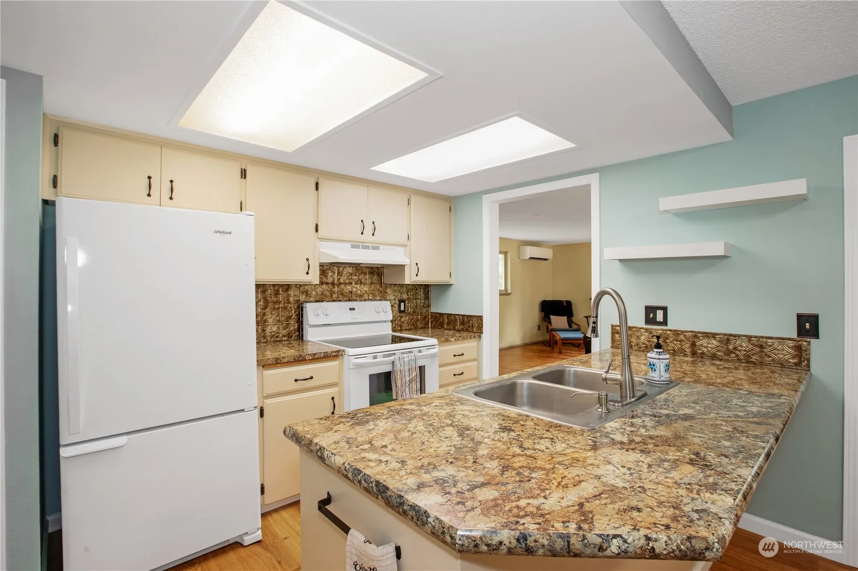 Well maintained charmer situated on a fully fenced, beautifully landscaped quarter acre. This one story 3 bed, 1.75 bath, home features: AC, skylights, wood laminate, vinyl plank, tons of storage, the coolest microwave on planet earth, and a cute covered porch for additional living area. The front and back yard are meticulously landscaped with mature landscaping, apple and pear trees, one car shop w/ power, and attached carport for a total of 4 covered parking spots (with the oversized attached 2 car garage). Minutes to I-5, shopping, restaurants, and less than 15 mins to JBLM.