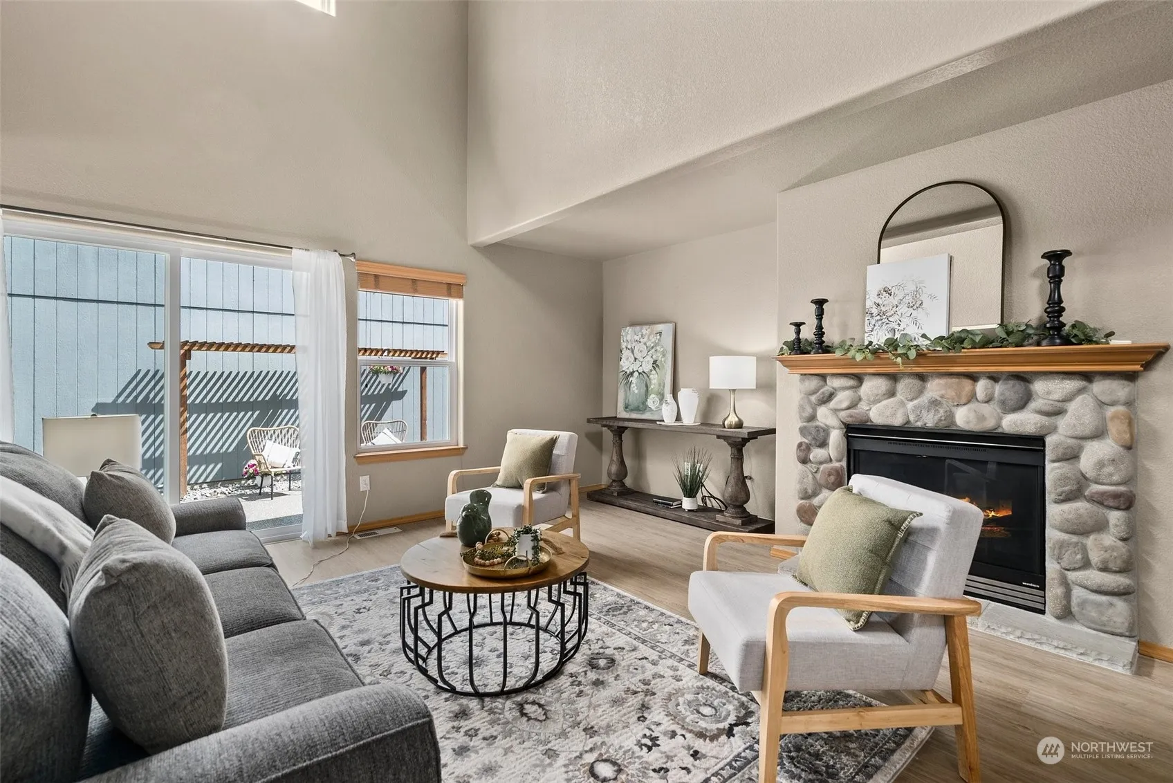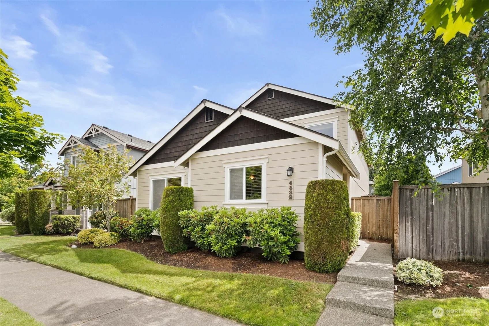 Easy living at this lovingly maintained home in desirable Kensington! Home has a main floor primary suite w/ huge walk-in closet & walk in shower. Also has an upgraded LVP flooring, kitchen w/ granite countertops, ss appliances & roll outs in all the cabinets! Nice sized living area, utility room, & convenient 1/2 bath finish off the main floor. Cozy gas fireplace for chilly evenings & A/C for those warm days! 2nd floor has 2 additional bedrooms, large loft area, & full bath. HOA maintains front yard. Enjoy your gorgeous fully fenced patio w/ roll out sunbrella awnings to provide shade! Double car garage w/ alley entry. Community has sidewalks & playground areas. Close to shopping, medical, restaurants, & amenities.