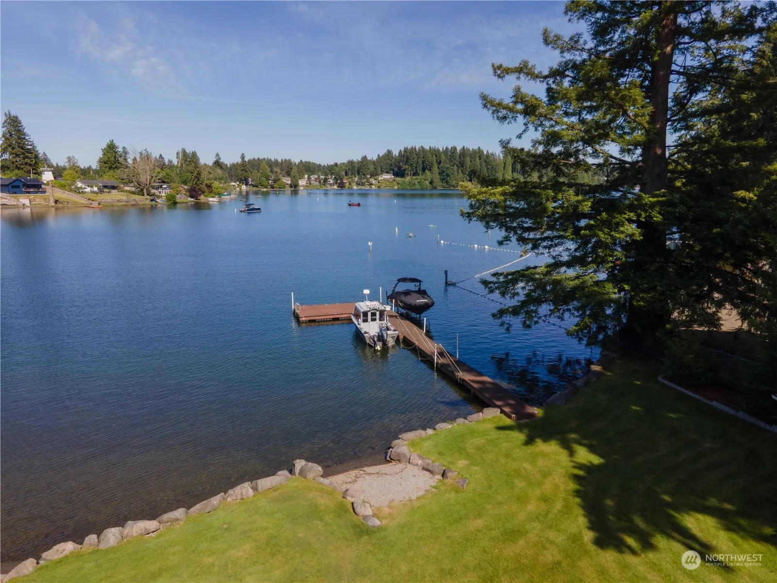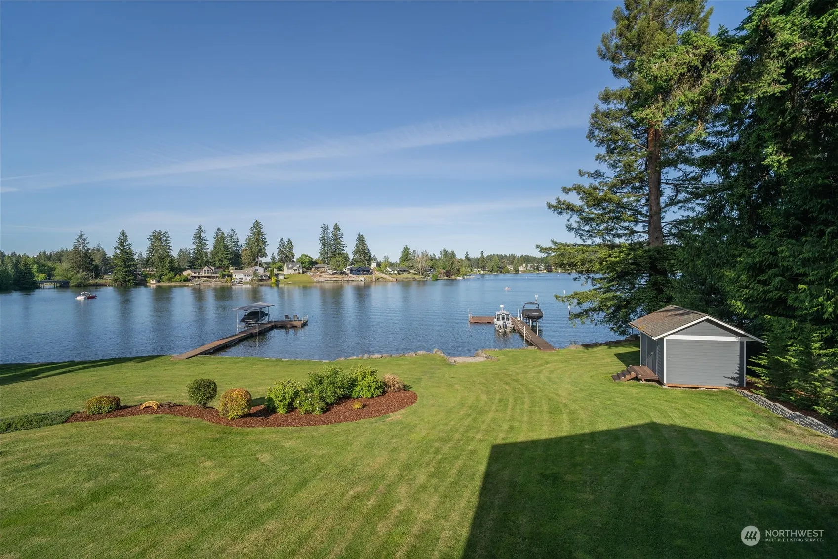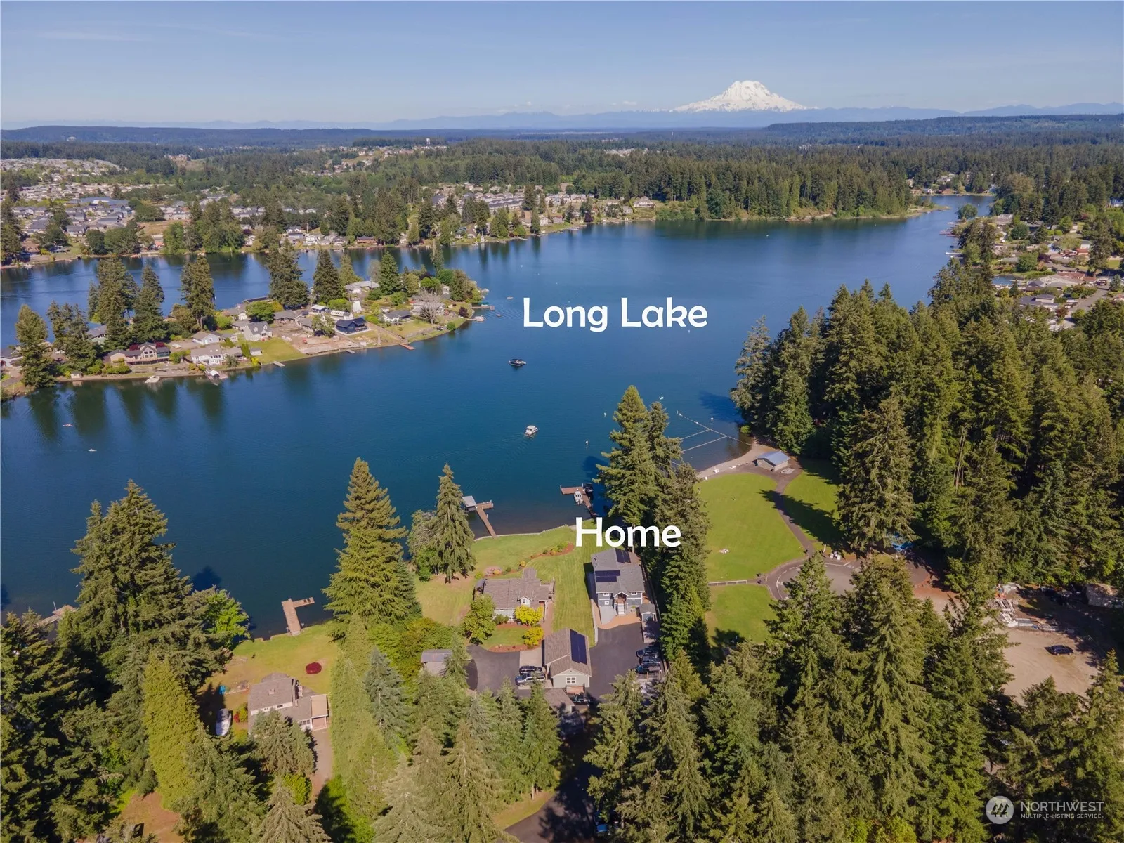 Phenomenal lifestyle & lakefront property on Long Lake. One of Thurston County’s most desirable & sought after lakes to live & play on! This property is the complete package! Acreage. 50′ of lake footage. Private dock. Oversized & spacious shop/garage. Private setting with a gated entrance, & long private paved driveway serving only 4 homes. No HOA. No CCRs. Nearly 180-degree views & the ambiance & tranquility of the lake are bar none. Versatile & timeless floorplan, which lends to multigenerational living. 3 bedrooms, plus a den, 2.5 bathrooms, 2 fireplaces. Covered deck & covered patio overlooking the sprawling lawn & lake. Recently transformed remodel. Feels like new. Gourmet kitchen(s), luxurious bathrooms. Solar panels.