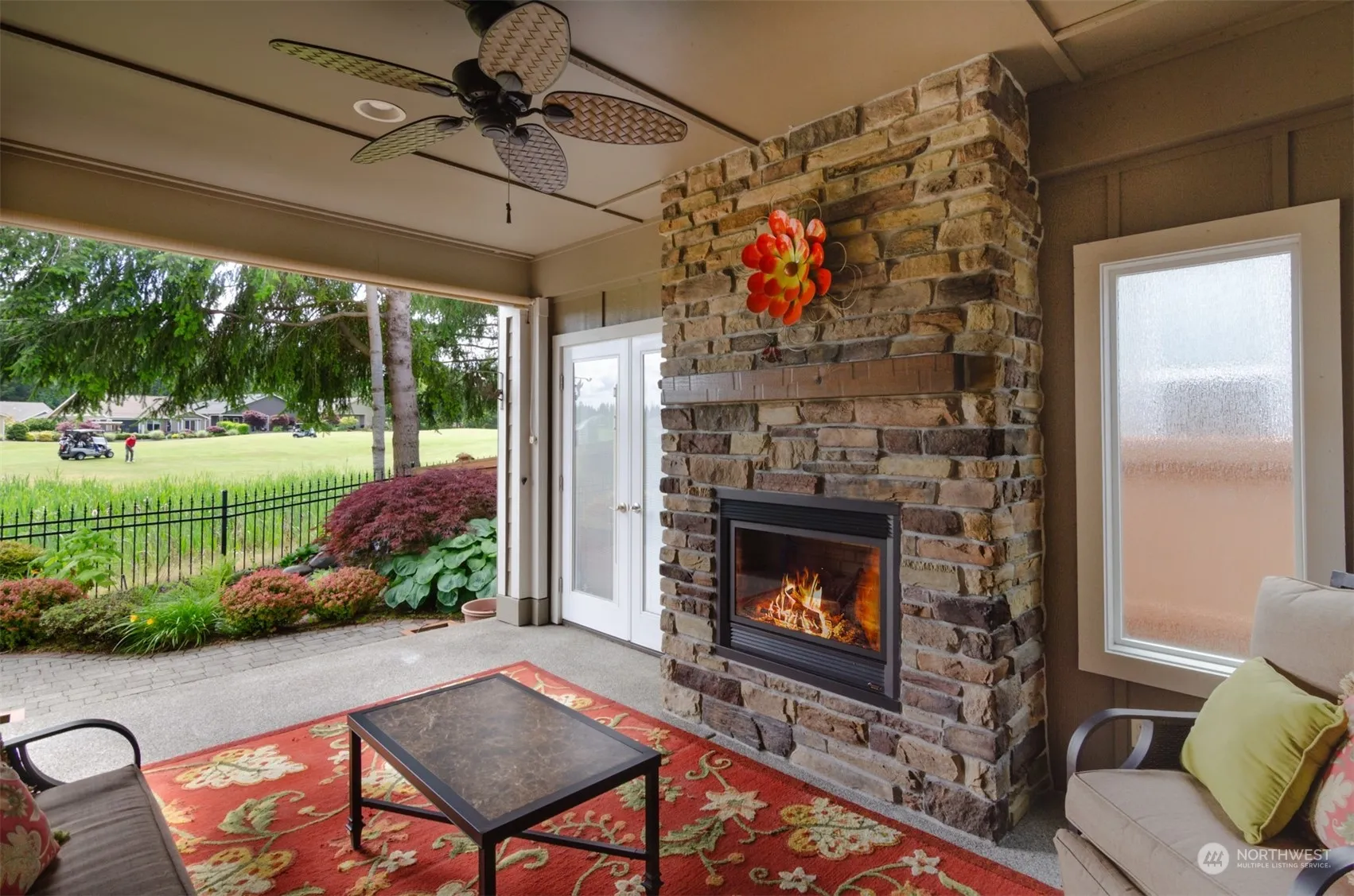 Experience the allure of this golf course home overlooking the 18th hole of the Links Golf Course in Jubilee. Home boasts the sought-after Nice Plan. HWD floors thru main living areas. Open kitchen features granite countertops, island, stainless gas stove & appls. Lots of cabinetry & coffee station. Den w/ built-ins & French doors. Primary bedroom includes a bay window & an ensuite bath w/double vanities & custom built out walk-in closet. The 2nd BR offers built-ins & a tiled bath. Flex work space w/ storage in utility area. Relax on the raised patio w/ a fireplace and a view of the golf course, complete closed in space w/remote screen enclosure. A waterfall & landscaping adds to the tranquility of the backyard. NEW solar installed. AC