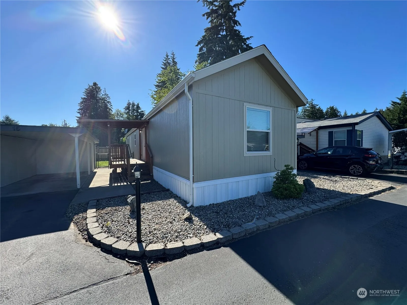 Super sweet and almost new! 2019 High Quality Kit (brand) manufactured home in a well organized and maintained park. Open concept and vaulted ceilings. Two full bathroom and 3 bedrooms. Covered entry and carport adn large storage area. Large-enough fenced yard and garden area. Seller contract available with large down. Includes all appliances. Manufacturer says 15 x 66 dimensions.