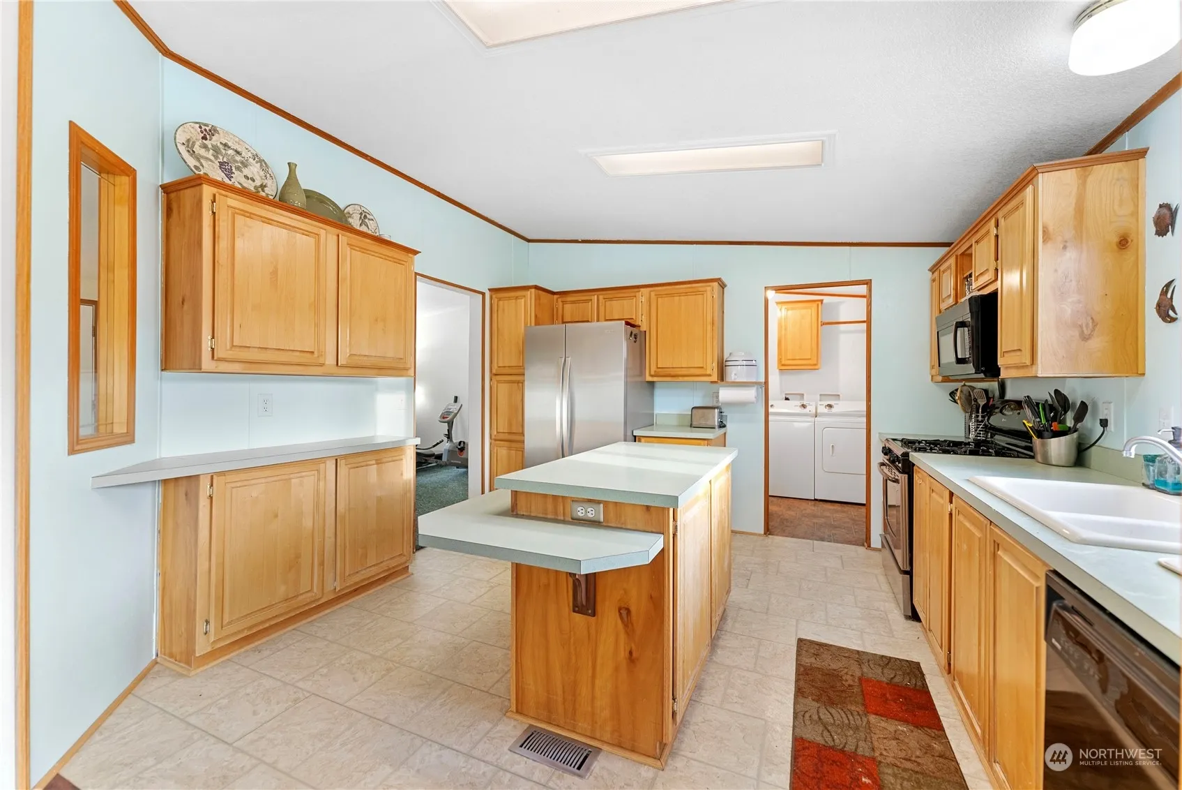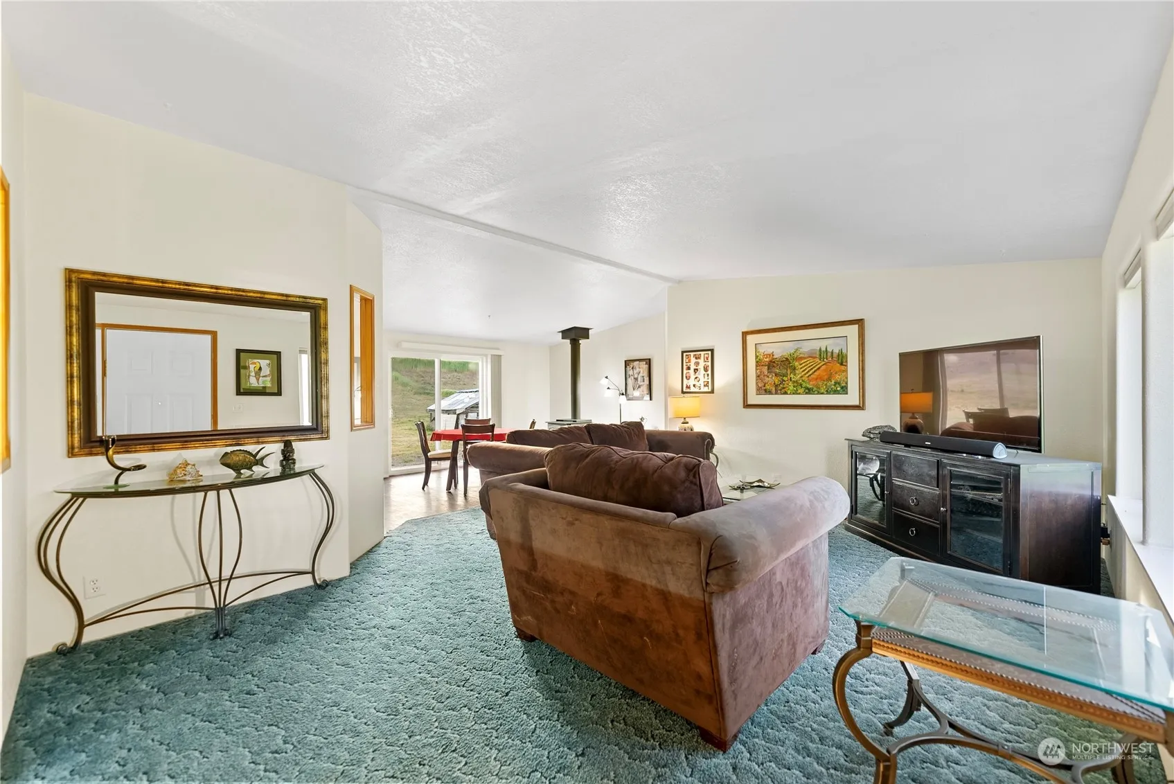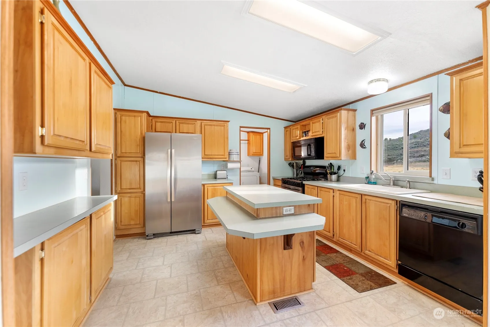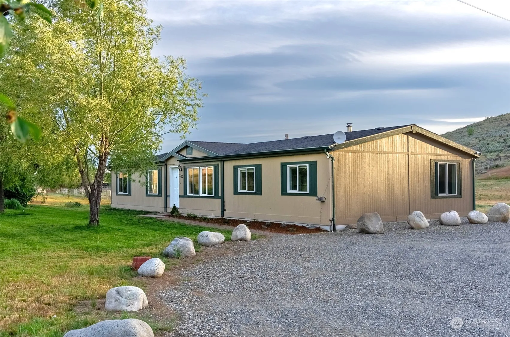 Very nicely updated, spacious double wide manuf. home situated on 5 country acres. Four generous bedrooms, primary bedroom at one end of the home featuring walk-in closet and ensuite bath with tub and separate shower. Open plan with great kitchen/dining/living room flow. Vaulted ceilings and skylight with ceiling fan make this great space even more expansive. Bright, inviting stainless kitchen is the hub of this welcoming home. Central forced air heating and woodstove create a cozy, inviting space. Mini-split for cooling make for a comfortable haven during those warm spring and summer days. Potential galore with separately fenced garden space. The detached garage-shop has more than ample room for parking, space for storage and projects!
