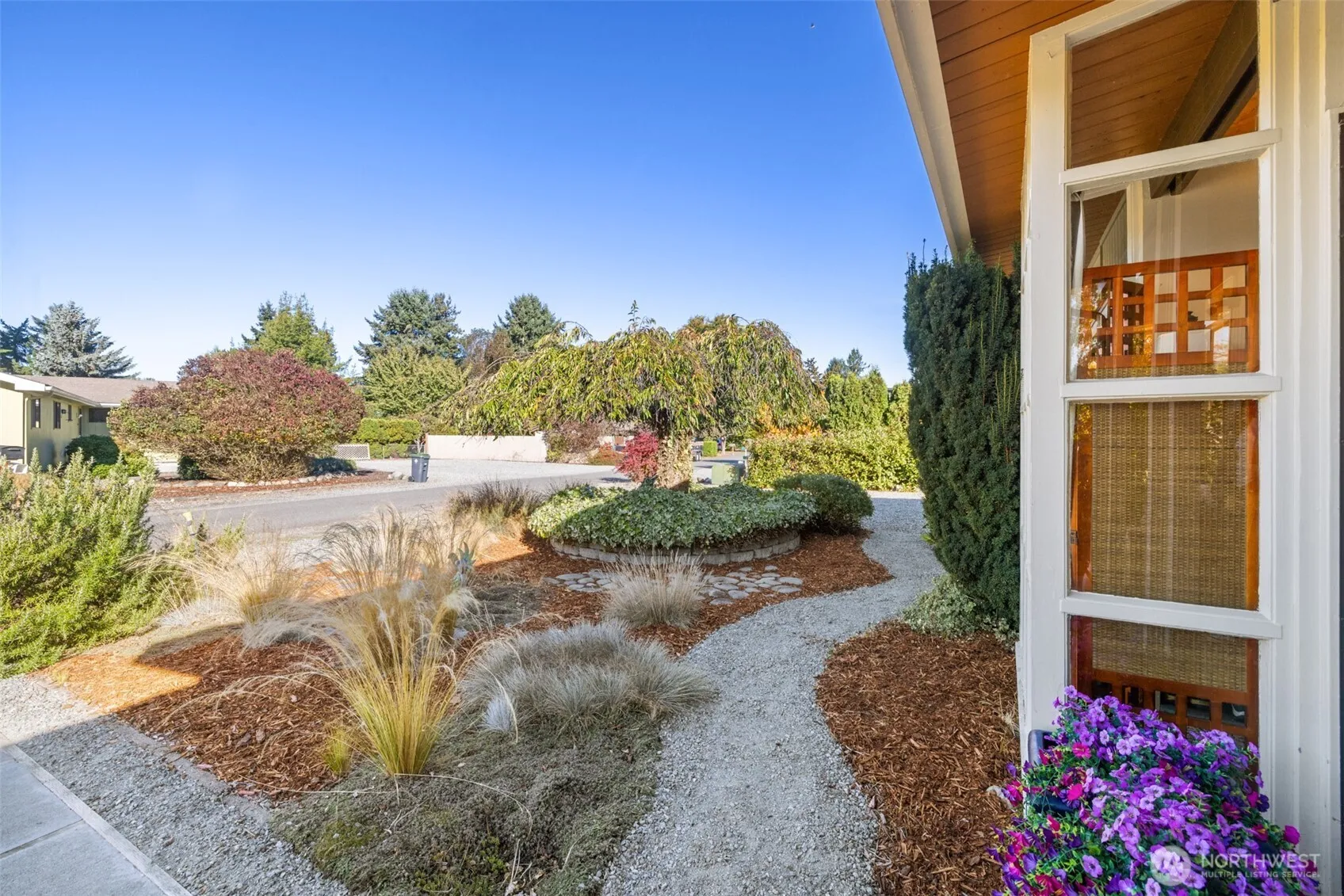 Welcome to peaceful living in Dungeness Meadows. This unique residence boasts modern architecture, inviting landscaping & mountain views. Inside is filled with character, showcasing wood beams, planked ceilings & natural light from skylights & floor to ceiling windows. Enjoy an updated kitchen w/granite counters, stainless appliances & large pantry. The home has a primary suite w/attached bathroom, second bedroom w/double closets AND separate studio room, perfect for a home office or gym. Large attached garage w/storage room/workshop, too. The backyard is the showstopper–concrete patio, seasonal irrigated stream, bridge, fruit trees & more. Situated on a double lot, there’s potential for building or splitting & selling the extra lot!