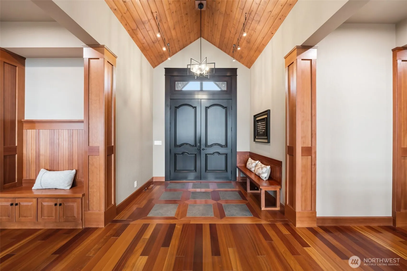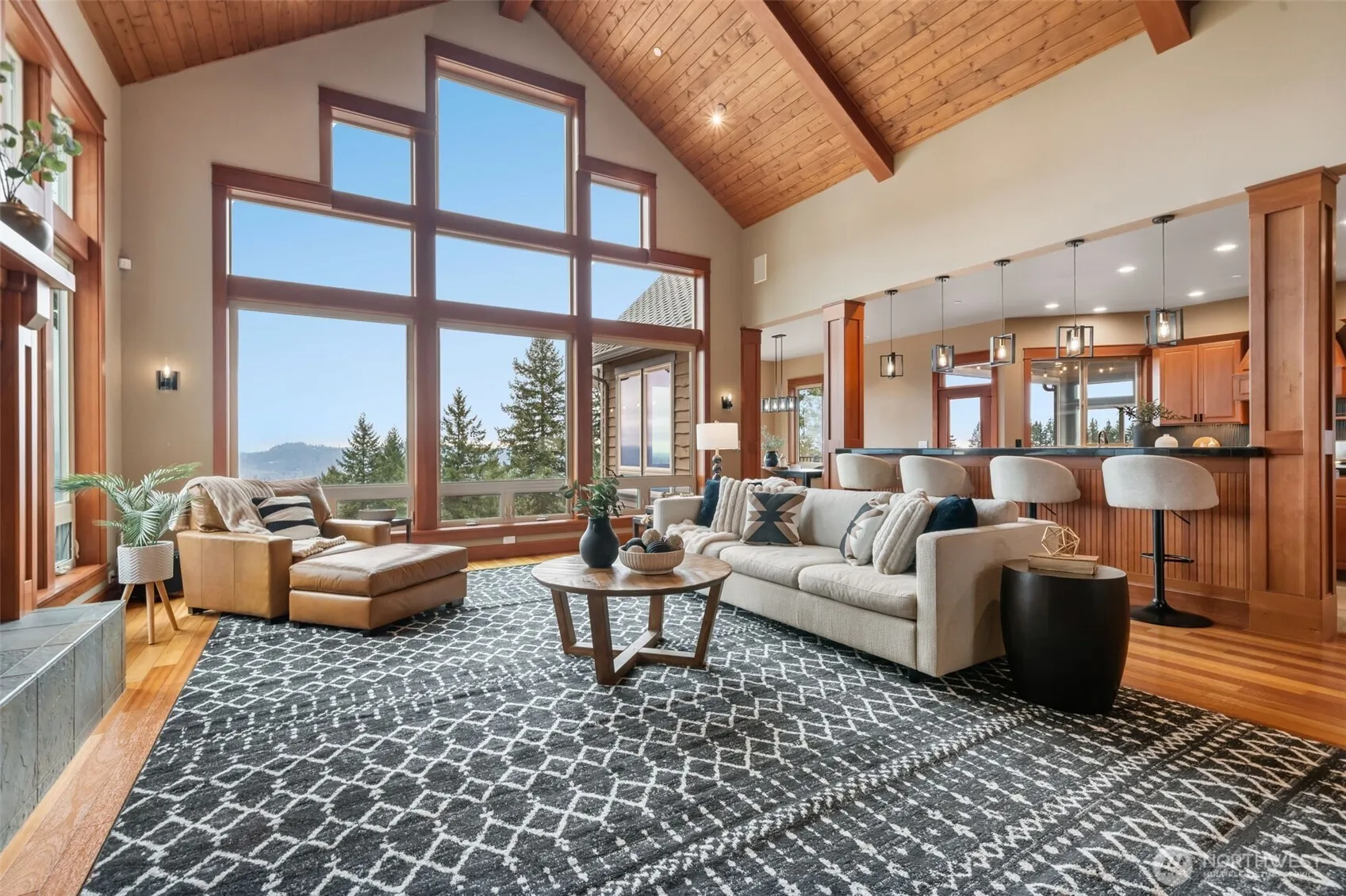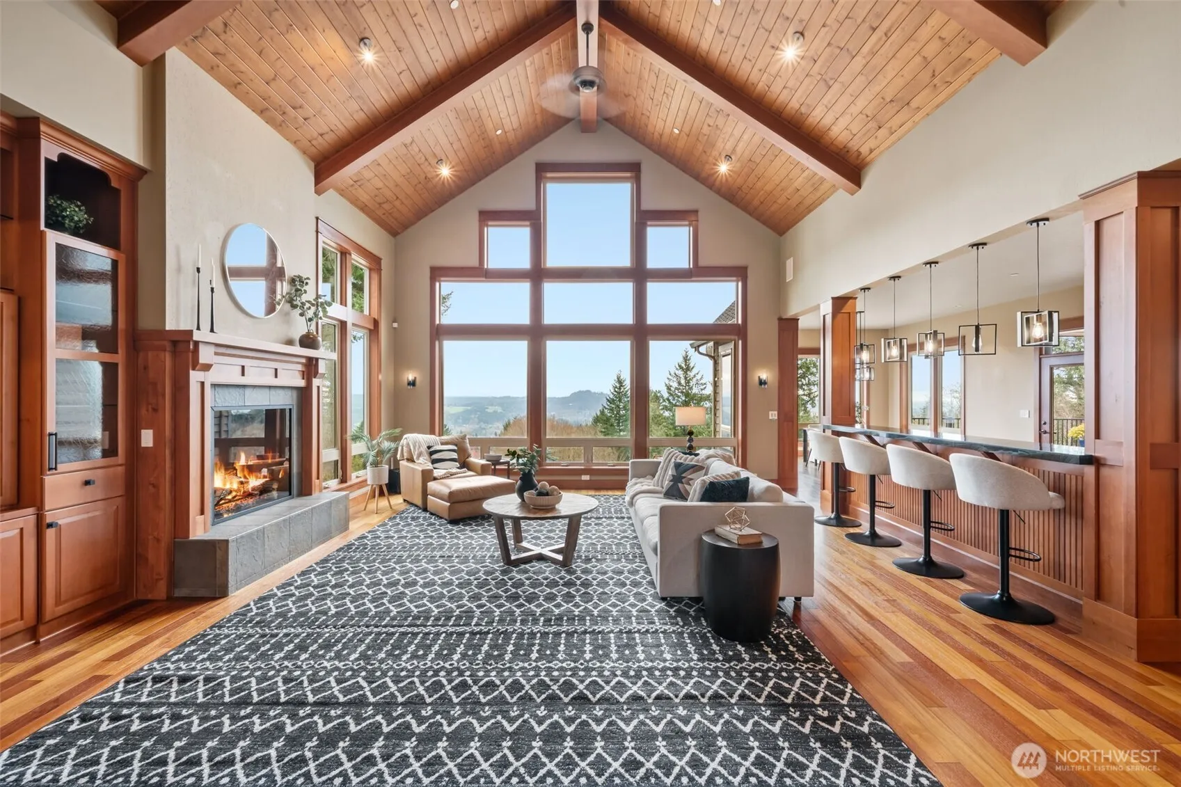 Enjoy sweeping views of Mt. Hood and surrounding pine forests from this custom home on 9.06 acres in a private gated community. Architect-designed, the home features distinctive 7/8″ wavy cedar siding, soaring 24′ vaulted ceilings, and cathedral windows that bring in abundant natural light. The main-level primary suite offers dual walk-in closets, a fireside sitting area, heated floors, and a spa-like bath with a river rock walk-in shower. Fireplaces in the bedrooms provide added warmth and comfort. A main-floor office can also serve as a guest room or fourth bedroom. Brazilian cherry floors and custom millwork add warmth throughout. The chef’s kitchen includes dual ovens, a professional-grade range, and access to three decks, including one enclosed with glass sliders and a motorized screen for year-round use. Additional highlights include a private guest wing with its own living room, a 3-car garage with shop space, a whole-house generator, a private pool, and a peaceful outdoor water feature. The adjacent 5.02-acre lot is also available.