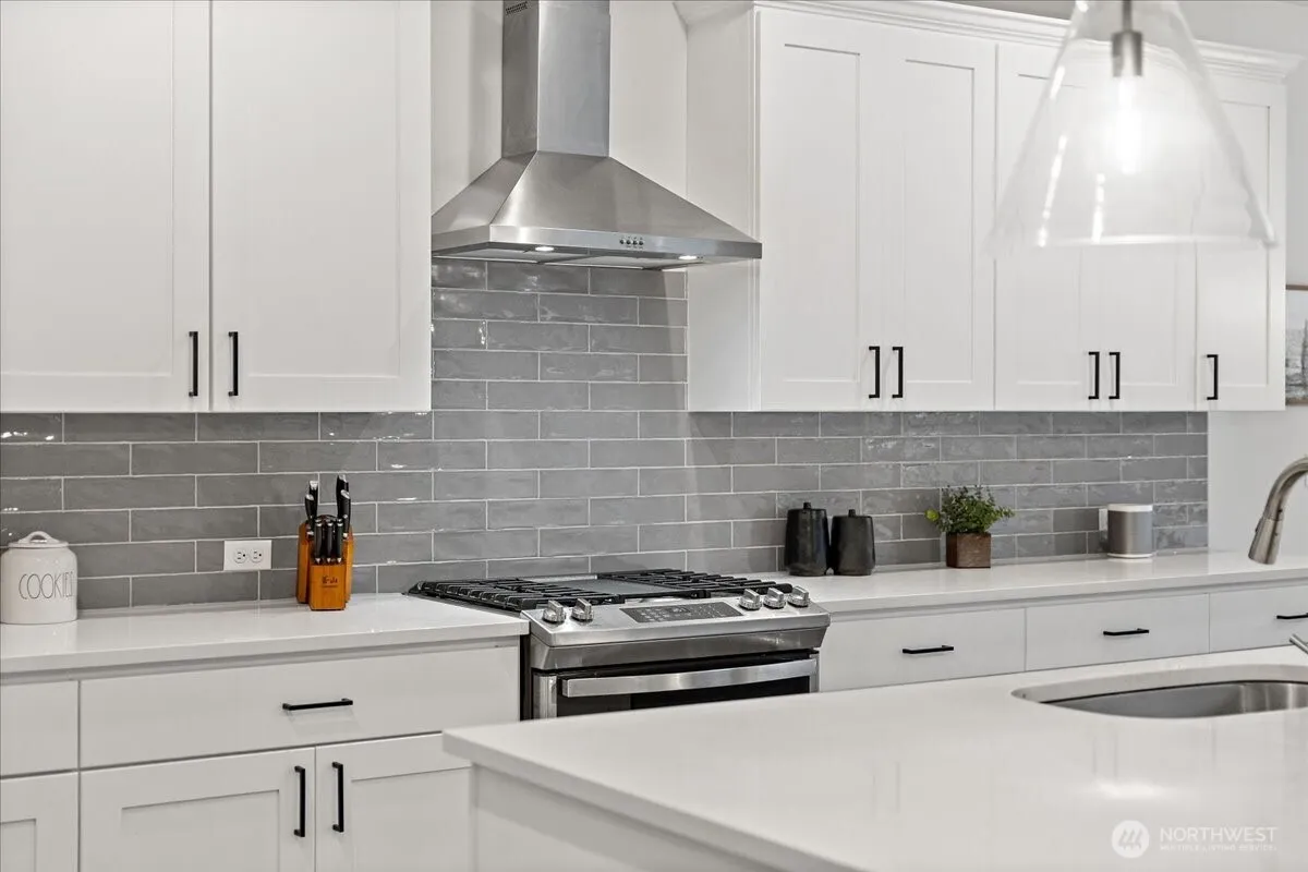 Thoughtfully designed for comfort and connection, the open-concept layout features warm engineered hardwoods, a spacious great room with gas fireplace and custom built-ins, and a gourmet kitchen with quartz countertops, custom cabinetry, stainless steel appliances, gas range, walk-in pantry, and large island with seating. A main-floor office, built-in mudroom storage, custom blinds, A/C, energy-efficient heat pump enhancer, and whole-house generator plug-in add style and function. The flexible floor plan includes a main-level bedroom with ¾ bath, ideal for guests or multi-generational living. Upstairs, a generous loft offers additional living space, while the expansive primary suite provides a spa-inspired bath and oversized walk-in closet. Step outside to a private backyard designed for year-round enjoyment. The level lot backs to serene greenbelt and features extended stamped concrete, covered patio, custom louvered pergola, 7-seat HotSpring saltwater spa, courtyard fountain, artificial turf, professional landscaping, irrigation, and full fencing for privacy. Living in Tehaleh means access to over 1,800 acres of protected open space and 40+ miles of scenic trails. Even more special, this home is grandfathered into the Sumner-Bonney Lake School District — a rare advantage. This home blends luxury finishes, thoughtful design, and exceptional outdoor living in a premier greenbelt setting.