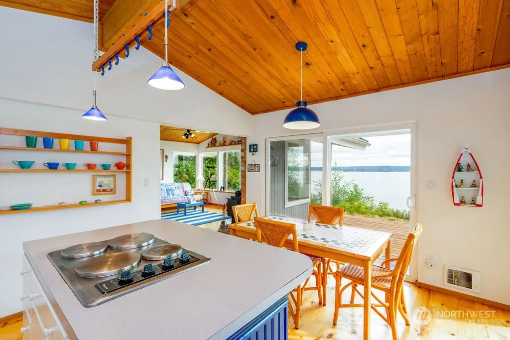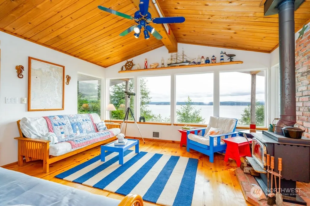 Private island bluff cabin with views of Puget Sound and Cascade Mountain ranges. Home is furnished and ready to enjoy. Cabin is full of charm with ocean views from kitchen, dining room, living room and deck. Metal roof. Basement has a small workshop, partially finished room, and plumbed for 2nd toilet. Property is woodsy, quiet and secluded. Island boasts a 9-hole USGA golf course, trails, returning eagles and whales, pirate ship playground, free summer concert series, 48 passenger private ferry, robust boating ride share program, community garden and so much more! Enjoy watching the whales from your deck. Hat Island is a great place for crabbing, shrimping, fishing, clam digging or beachcombing. A true community.