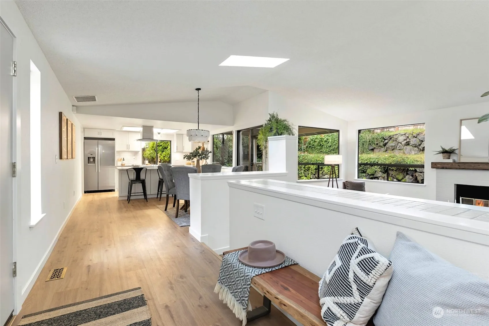 Enjoy casual luxury living in this private rambler haven. Fully renovated kitchen is a chef’s delight w/new QZ CTs, large island, new softclose cabinets paired w/new SS apps, farmhouse sink, subway tile backsplash + open shelving. Retreat to primary suite w/new spa-like 5pc ensuite featuring an upscale design: stunning QZ CTs + luxurious tiled shower. New waterproof plank flooring seamlessly connects the spaces, new interior paint + lighting. Vaulted ceilings + skylights create a light-filled, spacious and relaxing environment. Contemporary design + comfort awaits in this thoughtfully curated home, where every detail is crafted for your delight. Covered deck for year round indoor/outdoor living. 6 min to WF/TJs. 8 to Chambers Bay! Must see!
