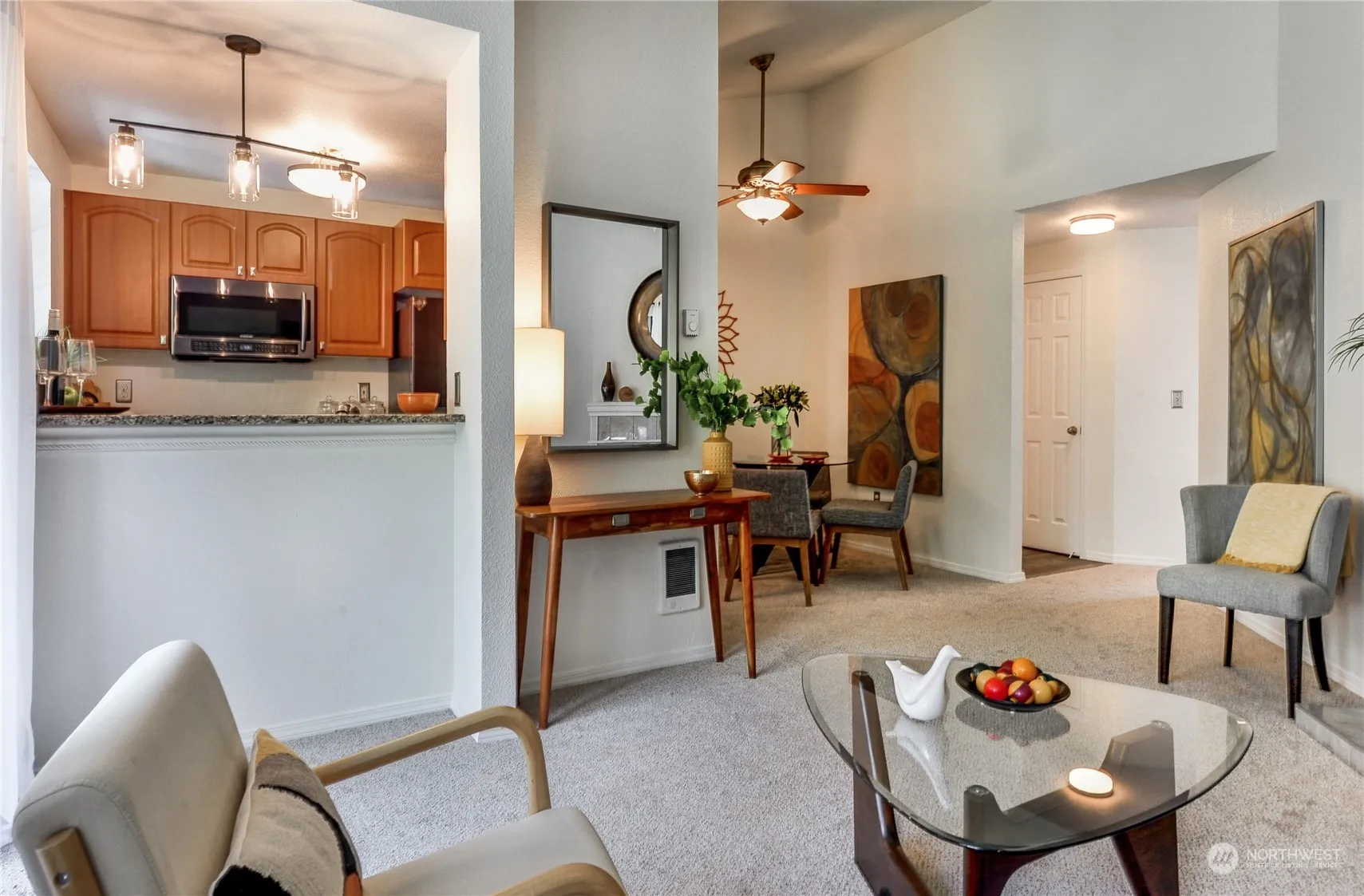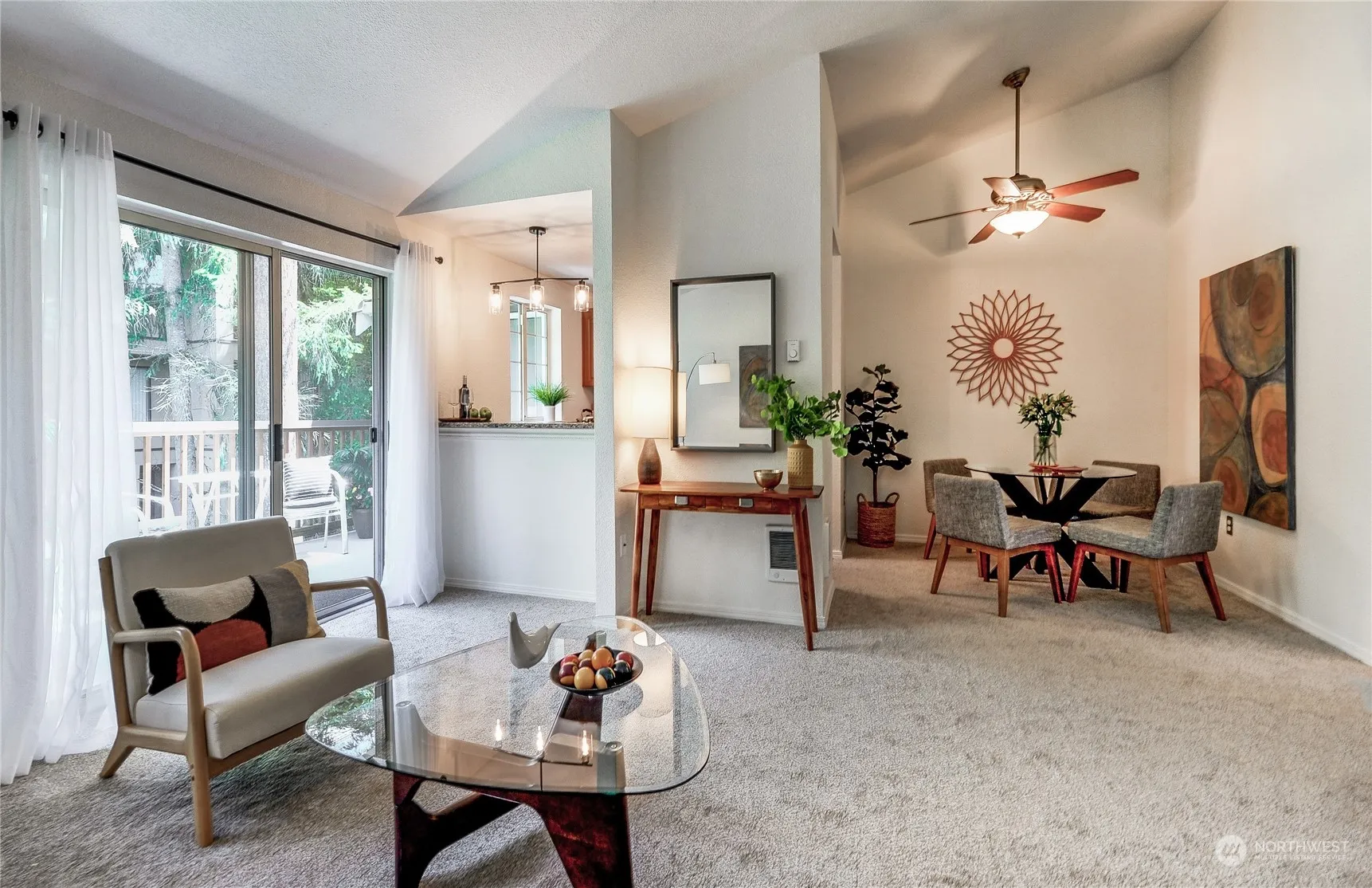 Light, bright and beautifully updated condo in sought-after Mill Creek neighborhood! Top floor living just steps away from Mill Creek Country Club, Tennis Club, Swim Club and scenic walking trails. Step into a spacious living room with vaulted ceilings & fireplace that opens to a beautiful balcony. A breakfast bar from the living room opens to a lovely kitchen with updated appliances & granite countertops. Relax in a large bedroom flooded with natural light & a walk-in closet. New carpet & paint throughout with in-unit washer & dryer. Well-run HOA + NO RENTAL CAP. Plenty of storage. Beautiful grounds & incredible amenities including outdoor pools, exercise room, athletic court, sauna & more. Minutes to Mill Creek Town Center!