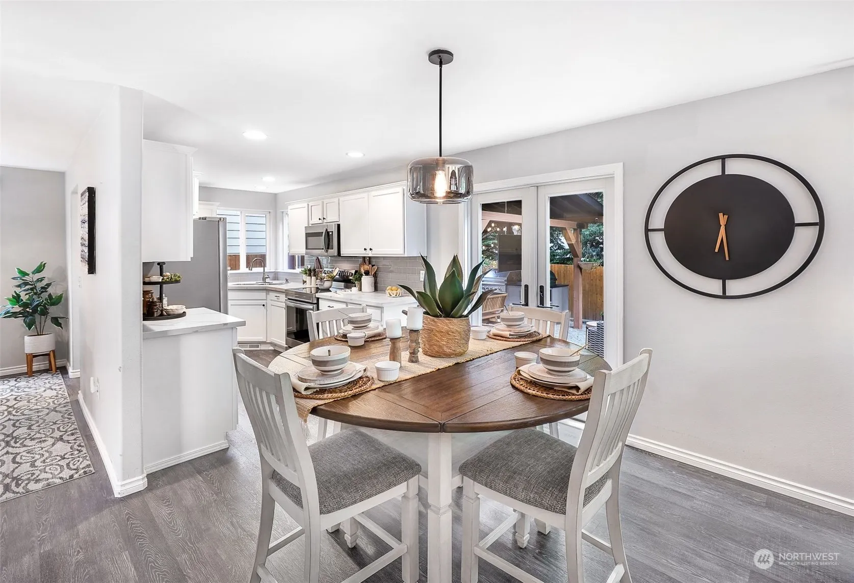 Welcome home to this impeccably maintained north-facing home, inviting you in with warmth & comfort! Nearby to many local parks & nearby coveted Mill Creek Schools, you will fall in love with this home’s convenient location. Step inside to the open main floor layout, perfect for both relaxation & entertaining. Enjoy the gleaming quartz countertops & SS appliances in the light-filled kitchen. Upstairs, three bedrooms await, accompanied by a full hall bath. Retreat to your primary suite, w/ a moody feature wall & en-suite w/ designer finishes. The backyard oasis has a newly built pergola, tranquil pond, & breathtaking landscaping. Nestled in the desirable Mill Creek area, this home offers proximity to local parks, and easy access to I-5!