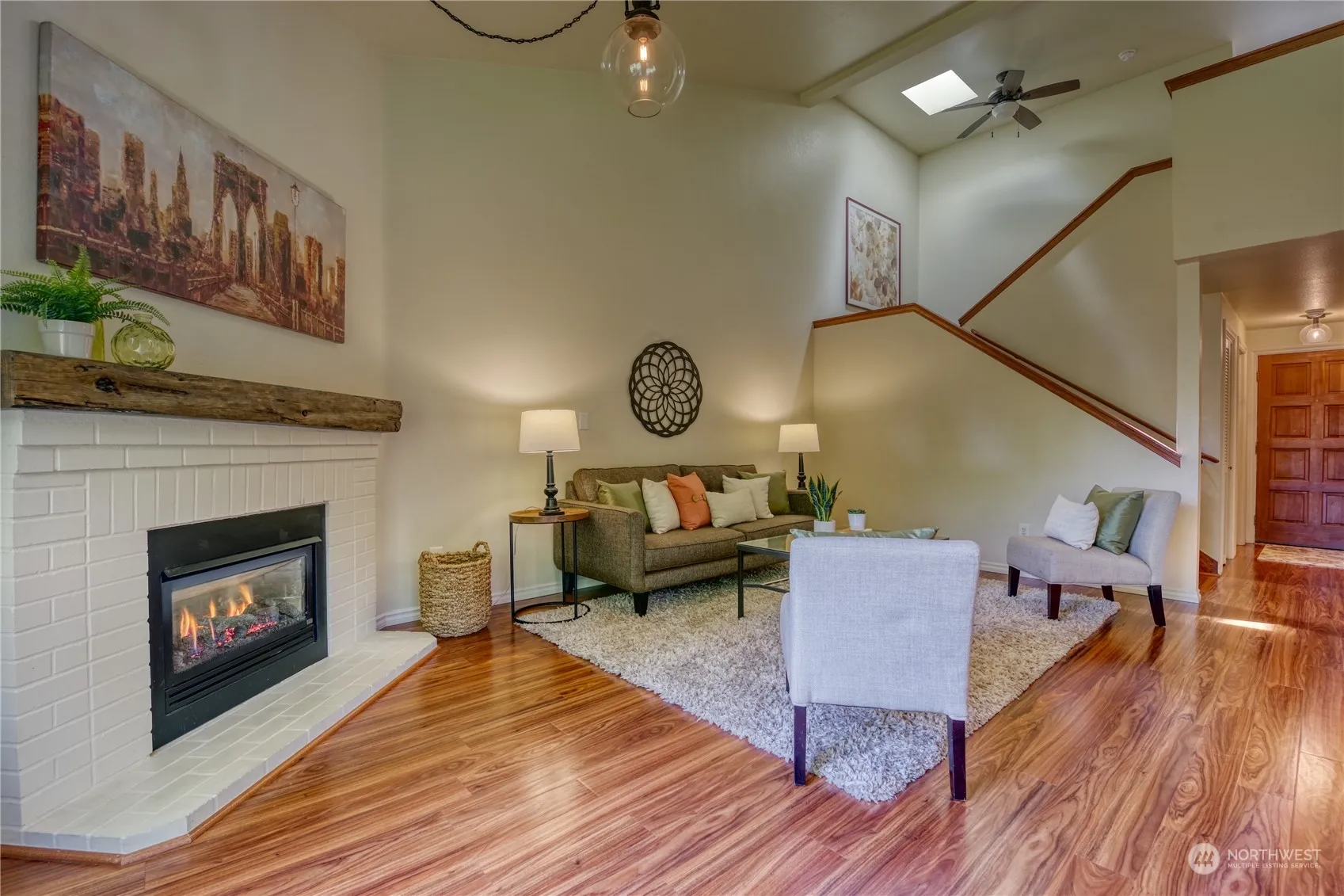 Mill Creek Country Club Living at an affordable price! Safe & secure setting in sought after Millers Village. Grounds are spacious with beautifully maintained landscaping. Soaring vaulted ceilings. Open & Bright. 1348 sf. 3 Beds, 2 Baths. Very comfortable home & fully remodeled in 2018 incl ALL NEW; eng laminate hardwood throughout, shaker doors & trim, bath cabinets / granite counters, plumbing, lighting, paint. Also NEW 2018; Kitchen quartz counters, refinished cabinets, stainless appliances. Gas water tank 2019. Garden window, gas fireplace & custom mantle. Spacious Primary Bed has lg closet area & ensuite bath. Att 2 Car Garage. Ample parking. Great walking. Near MC Country Club, Trails, Parks, Town Center. Coveted Mill Creek Schools.