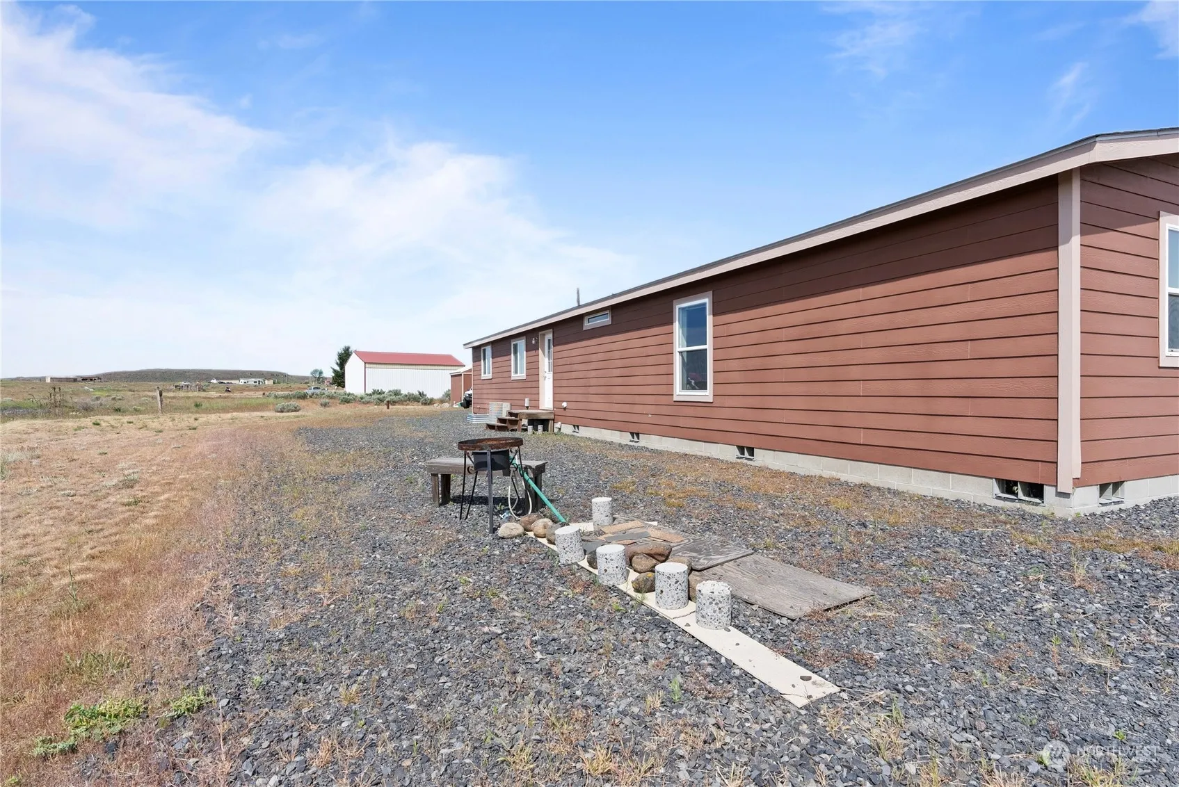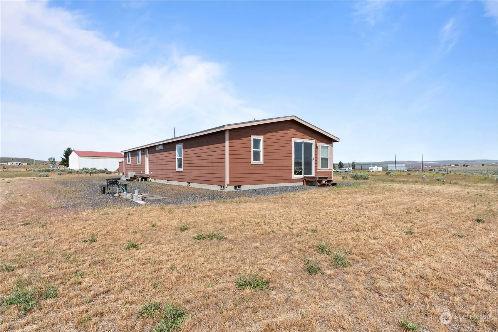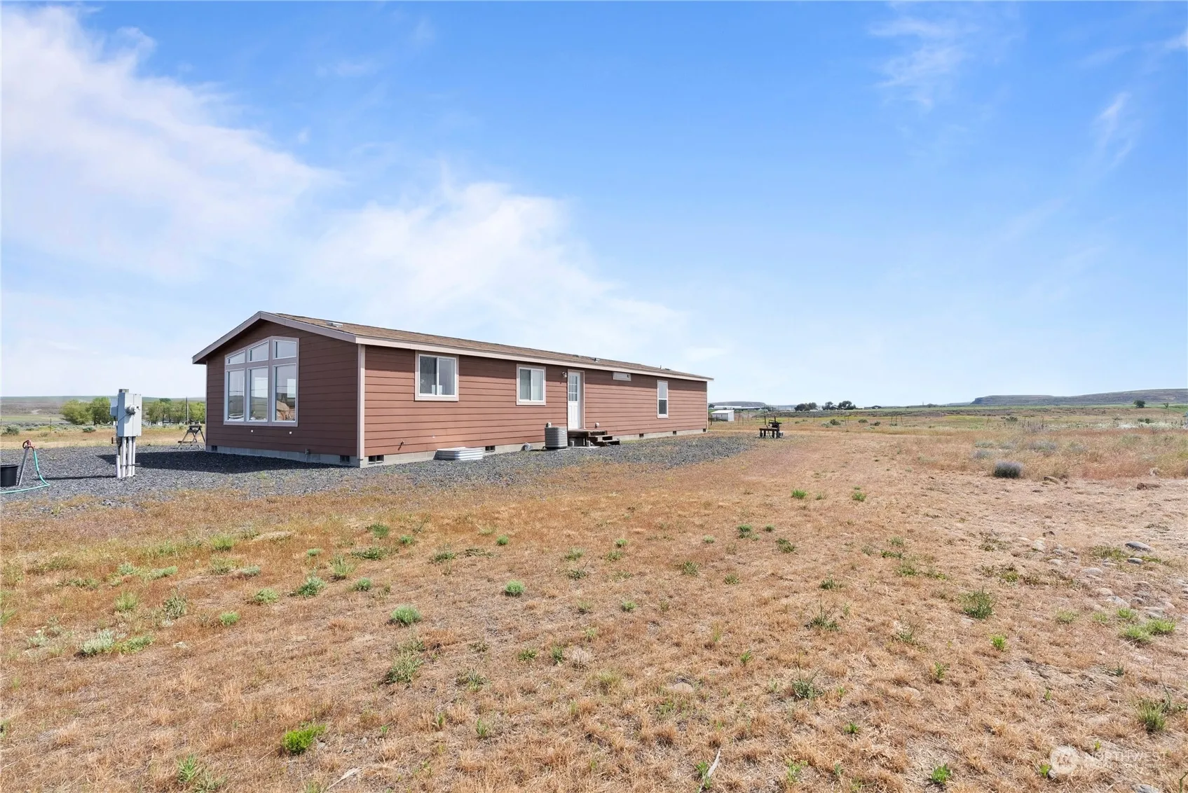 Beautiful 3 bedroom, 2 bath , 2012 Valley Quality manufactured home in excellent conditions on 9.2 acres, located east of Soap Lake. Main bedroom features walk in closet, double sink vanity in bathroom and patio door access, ceiling fan in dining room, modern and functional kitchen, laundry room with utility sink, cabinets and closet.Completely finished, heated pump house with concrete floor and plenty of room for storage. Private septic and well. Property close to recreational activities; fishing, hunting , hiking, boating, and camping. Call for a showing appointment today!