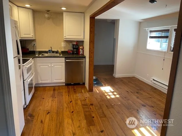 Wonderful updates and layout in this charming home. Fully fenced yard, 2+ car carport with alley access, 12×34 work shop or storage with concrete floor, insulated and sheet rocked. 2 new mini splits for heating and cooling, updated kitchen and dining area with wood flooring, large entry way, utility area- washer and dryer stay. Spacious bathroom with double sinks. Large family room with door to a large private covered back patio and garden space. All plumbing was replaced with PEX.