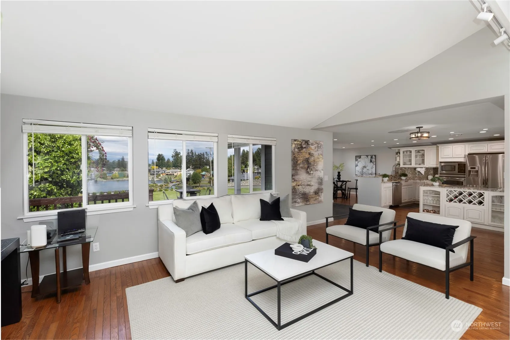 Discover the epitome of lakeside living in this stunning craftsman-style home on over an acre of professionally landscaped grounds. Nestled on the serene shores of Lake Tapps in the coveted Fairweather cove, boasting 90ft of shorefront, private docks and launch, extra tall boathouse and lakeside cabana perfect for entertaining. You’ll have more than enough space with multiple parking terraces, dedicated boat and RV parking, and convenient rooftop entertaining areas. With a detached garage, every hobbyist will feel at home. The home features a large open floor plan, air conditioning, and private access to the daylight basement with kitchenette. The primary bedroom has custom closet, vaulted ceilings, and sweeping views of Lake Tapps.