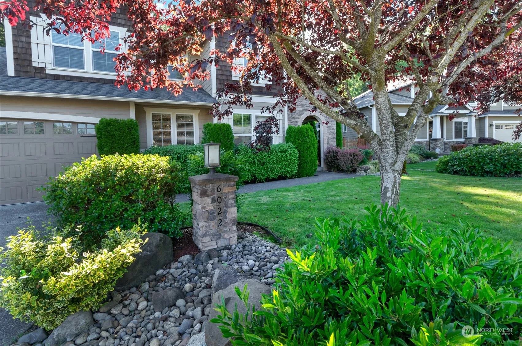 Welcome to the exclusive Bohemian Estates, where no detail has been overlooked! This home features a gourmet kitchen complete with granite countertops, an oversized island, stainless steel appliances, and hardwood floors. The expansive main floor bedroom includes an attached bath. The generous primary suite offers a 5-piece bath and a large walk-in closet. An additional bonus room is located upstairs. Enjoy the view of your private, wooded backyard through oversized windows, along with the convenience of a sprinkler system. Recent updates include a new furnace in 2022 and a heat pump in 2020. The community offers a gated entry, playground and is just minutes from Lake Tapps!
