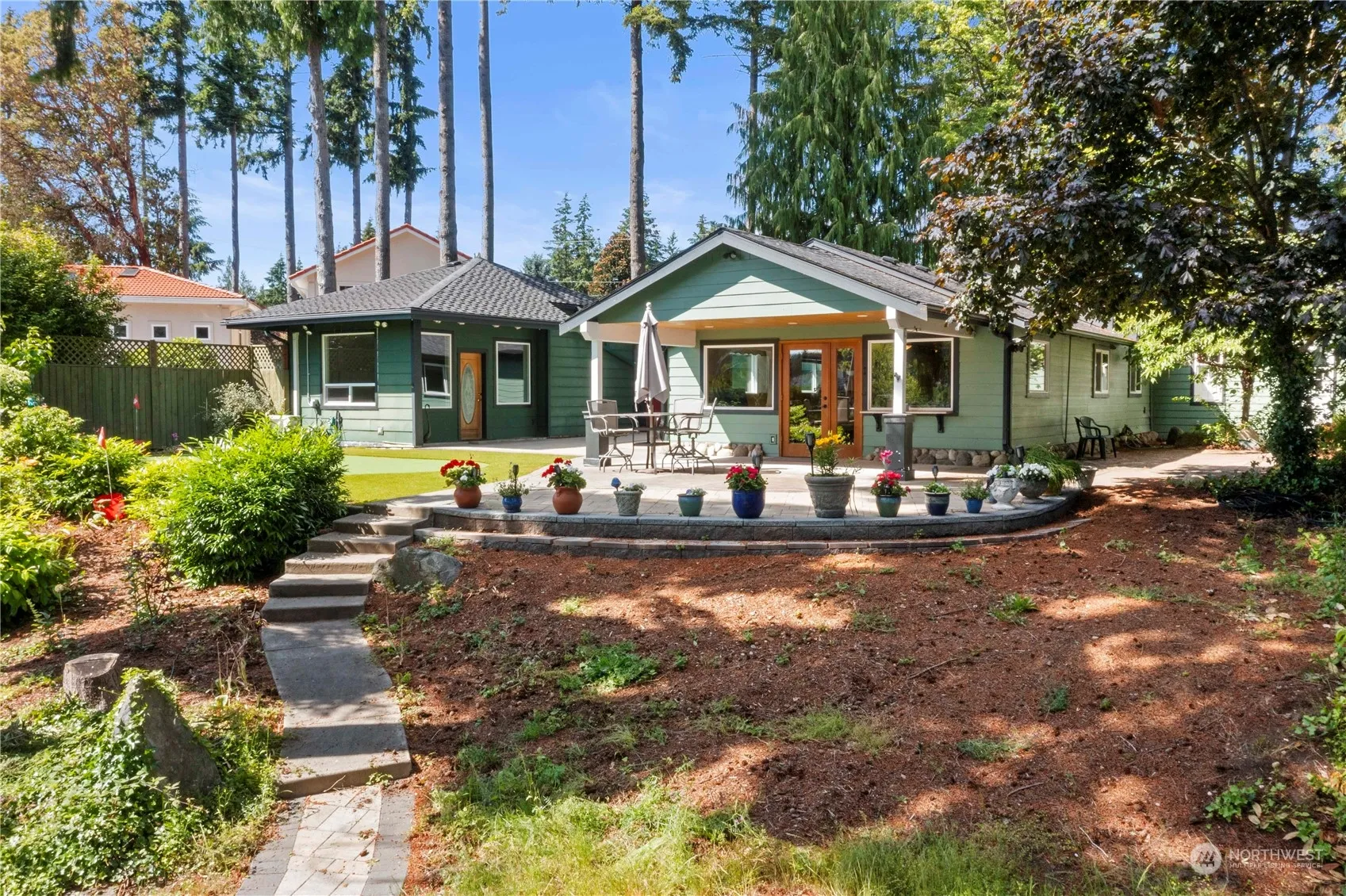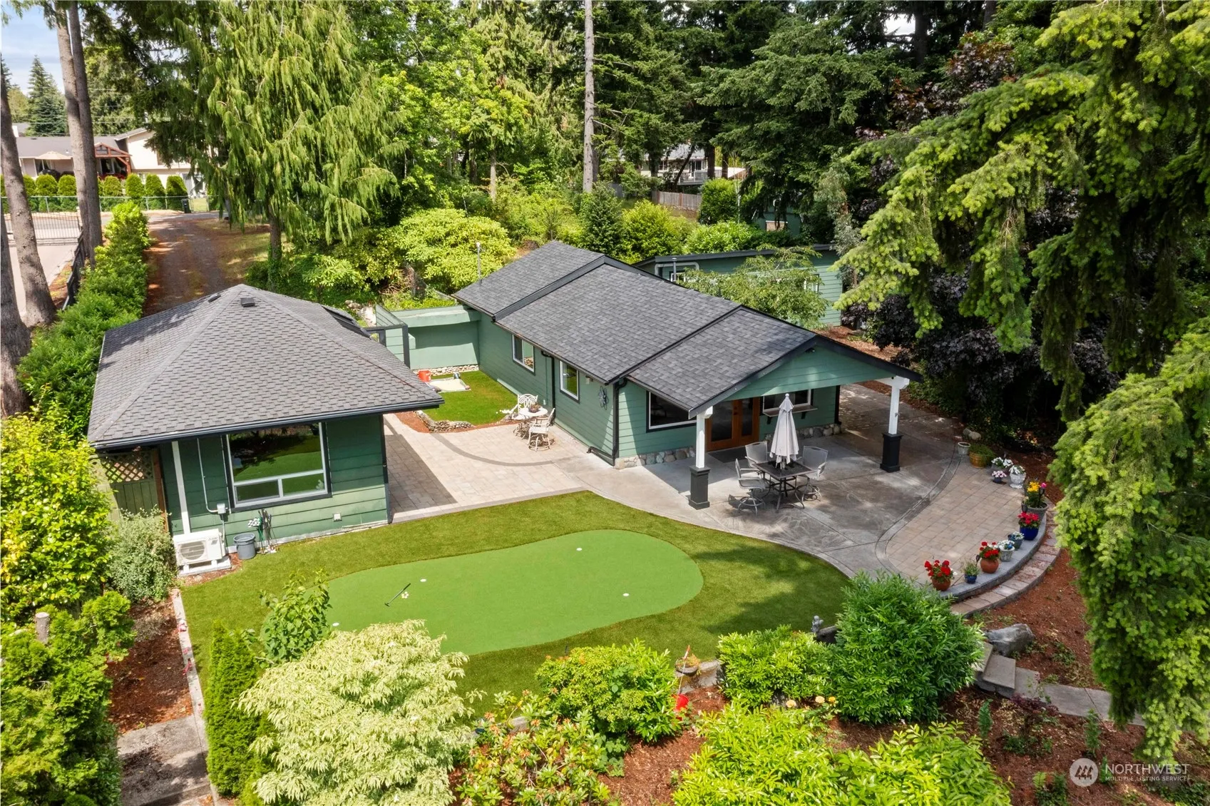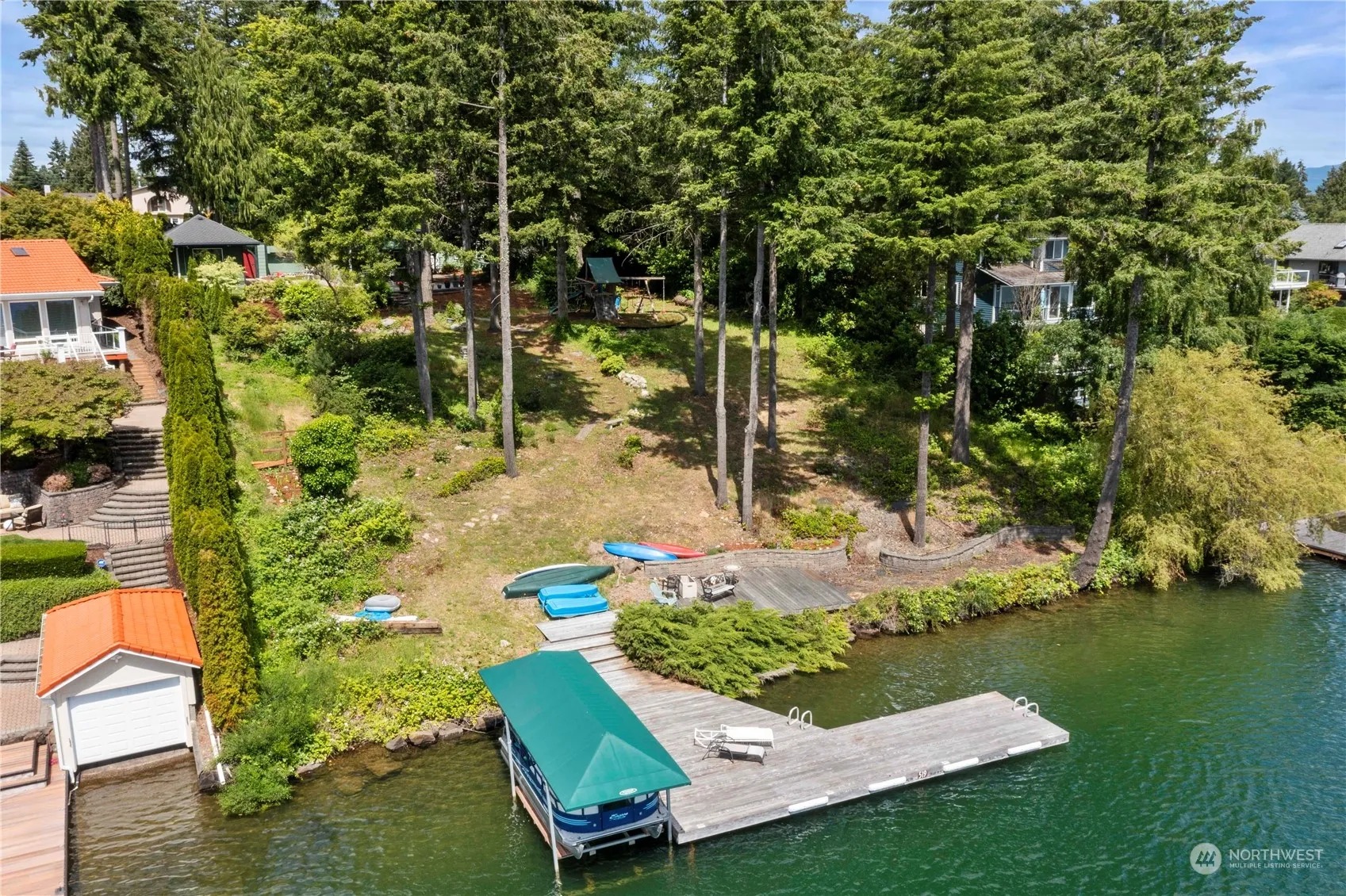 Private Lake Tapps waterfront oasis nestled on serene 1 acre. Mt Rainier view. Enchanting property on double lot, charming updated cottage+secondary building w/rough in plumbing ideal for studio/music room/office. Enter gate to lush landscapes, mature trees, pond/fountain&putting green. Endless possibilities as serene retreat, artist’s haven or luxurious compound. Enjoy waterfront living w/bulkhead, dock, boat lift & covered boat slip. New heating/AC, flooring, siding, windows, roof, gutters, modernized kitchen&open concept living. Spacious primary ste is haven of comfort with attached 3/4 bath & walk in closet. Covered outdoor living. Carport+space for detached garage or build dream home. 2 outbuildings provide extra storage/office space