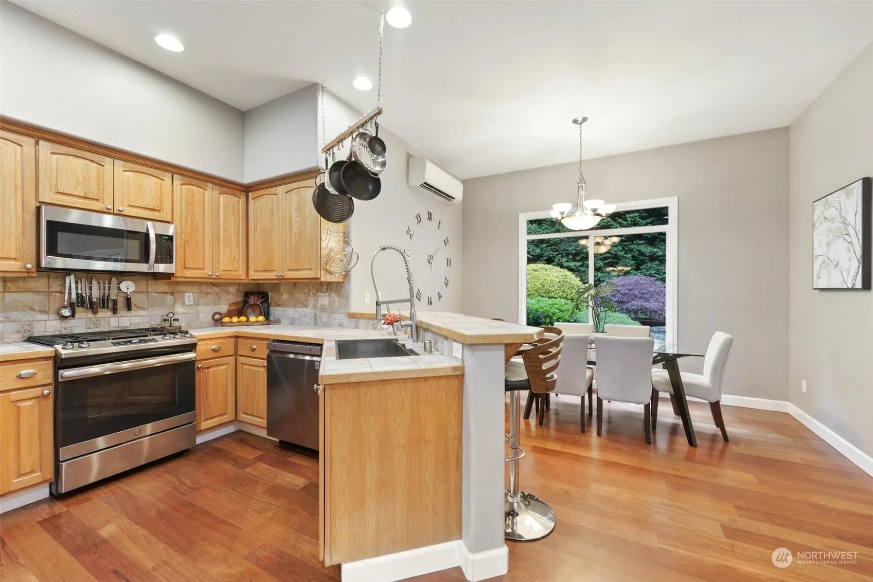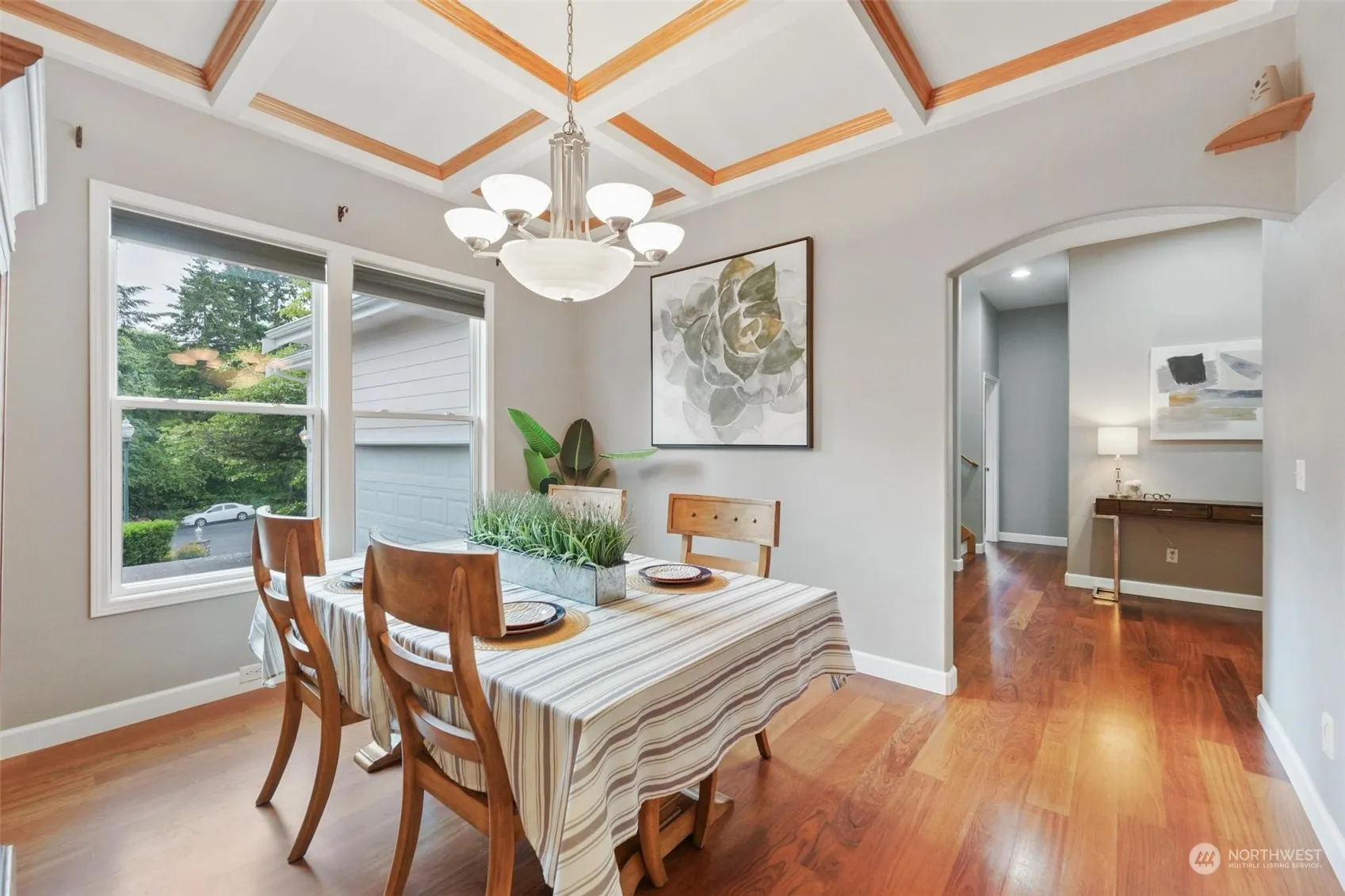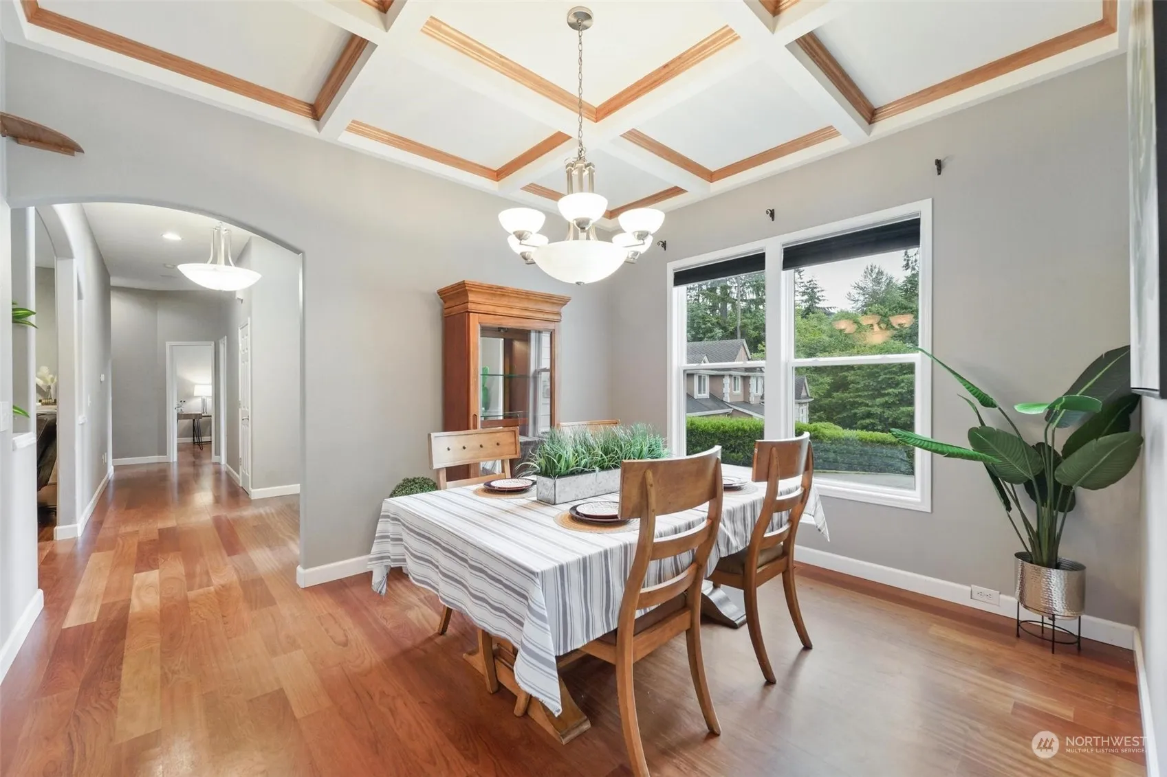 Expansive Brazilian hardwood floors invite you into this open and bright rambler. Tiered peninsular counter w/eating bar in open Kitchen large pantry, tile counters, & stainless appliances. Gas fireplace in Living rm. Form Dining features coffered ceilings. Well-appointed Primary Suite, finished w/tray ceiling & walk-in closet. Barn door opens to ensuite w/jetted tub & walk-in shower. Three guest bdrms (two sharing jack&jill bth), each w/their own ductless mini-split. Expansive upper level bonus rm. Sitting on shy half acre, fully fenced w/mature landscaping. Tucked away on corner lot in gated Grandview community, in highly sought after Dieringer School District. Moments from Lake Tapps; spend your summer on the water, swimming & boating.