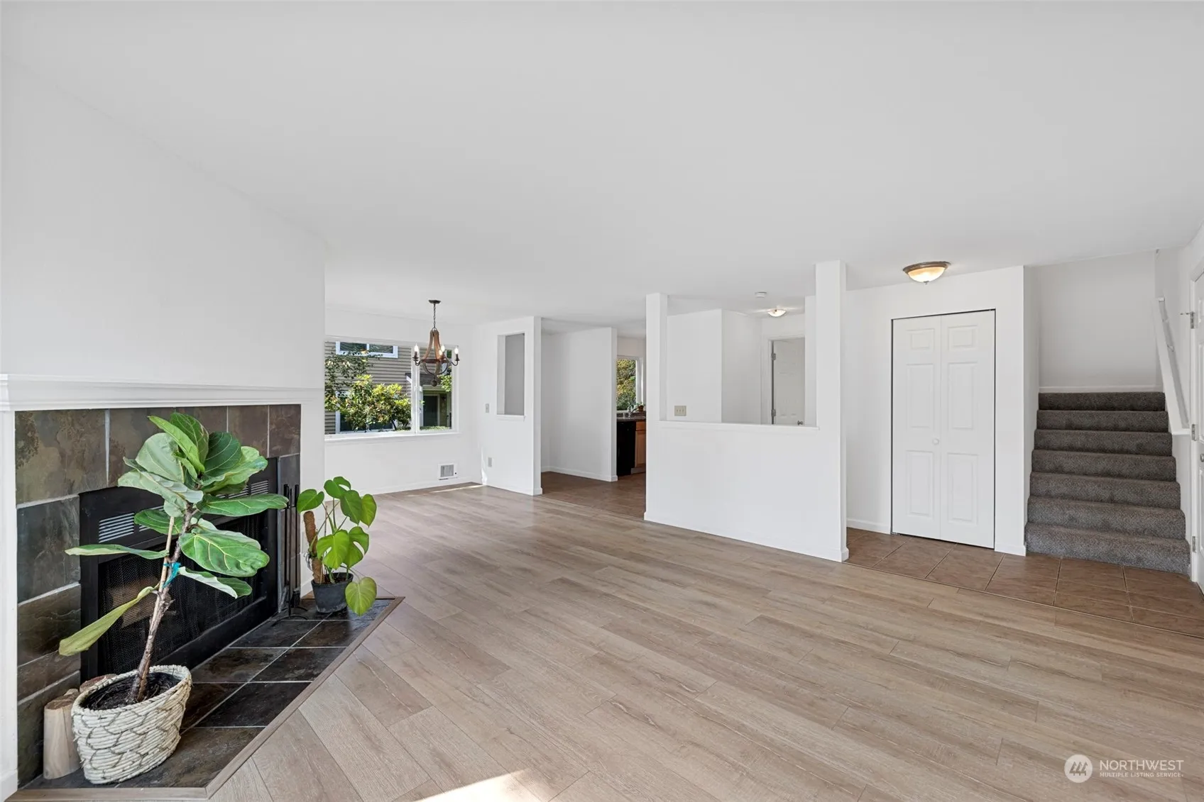 Discover this gem: a beautifully updated 3-bed, 1.5-ba townhome, uniquely featuring two parking spaces. Enjoy a vibrant summer lifestyle with access to a community pool, clubhouse, and gym. Updated w/ fresh paint, brand-new carpeting & beautiful laminate wood flooring downstairs, creating a bright & modern ambiance. The home offers ample storage with numerous closets, and all 3 bedrooms are conveniently located on the upper level along with the laundry. The primary bedroom features two closets and a private vanity with sink. All appliances stay with the sale, making this home truly move-in ready. Located minutes to Des Moines marina, future light rail station, & Highline CC.