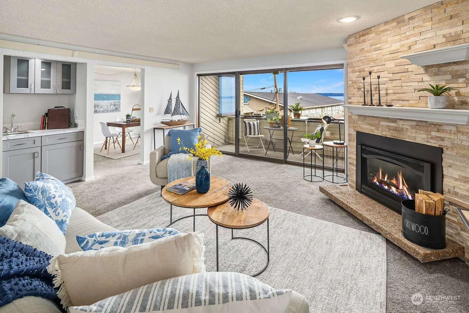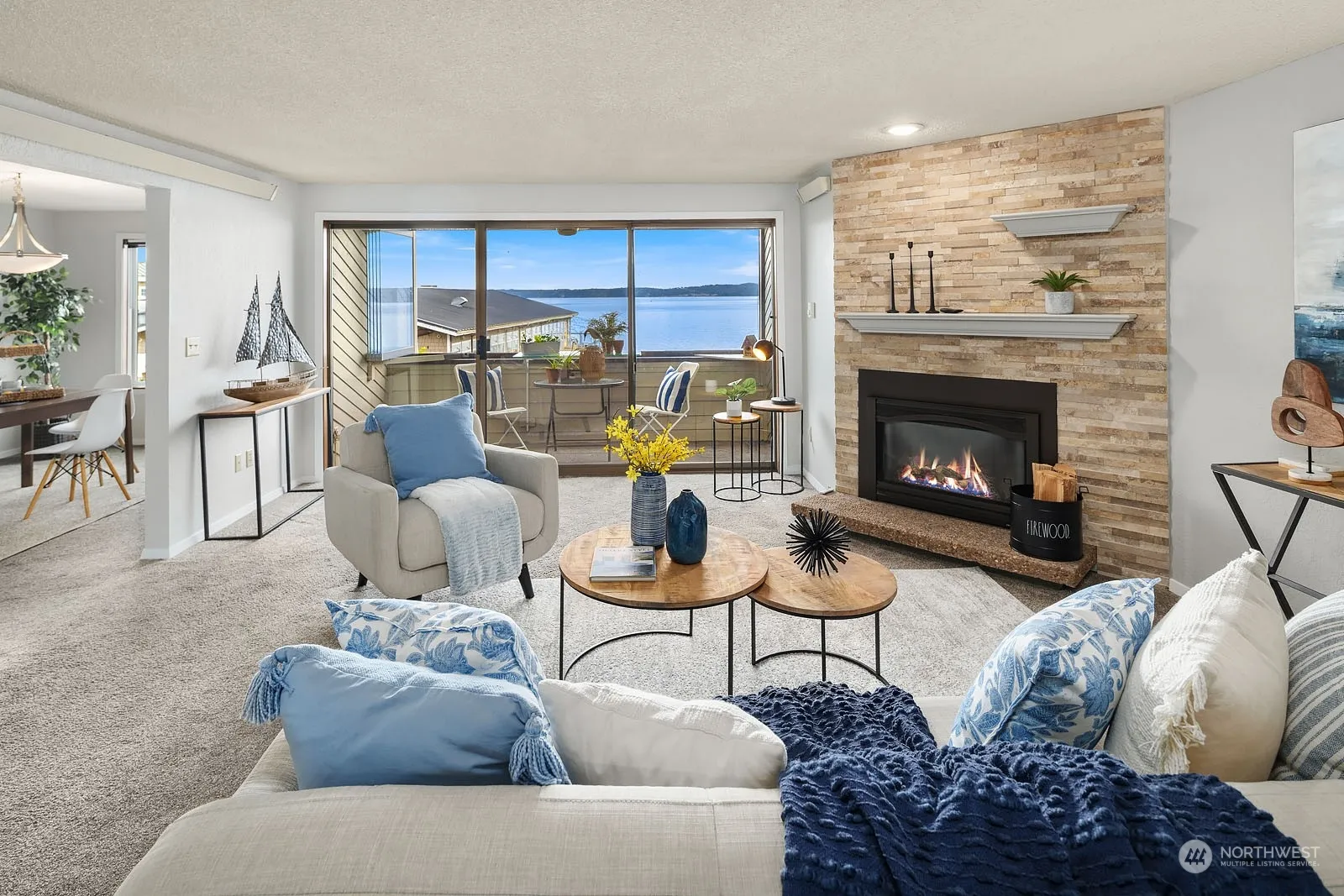 Spectacular views of the Puget Sound and Olympic Mountains in highly desirable Redondo Beach neighborhood…beach, pier, boardwalk, aquarium & more just outside your front door! Thoughtful floorplan with sunlit interior highlights breath-taking views from all living spaces. Watch eagles soar and gorgeous sunsets from your private covered balcony for year-round enjoyment. Cozy fireplace adorns the living room that opens to casual dining and charming kitchen all focused on the beautiful views. Primary suite w/walk-in-closet + bed/bath for guests or home office. Boutique-style building with secure entry, parking & storage. Pets welcome. Enjoy an easy lifestyle, waterfront living at its best.