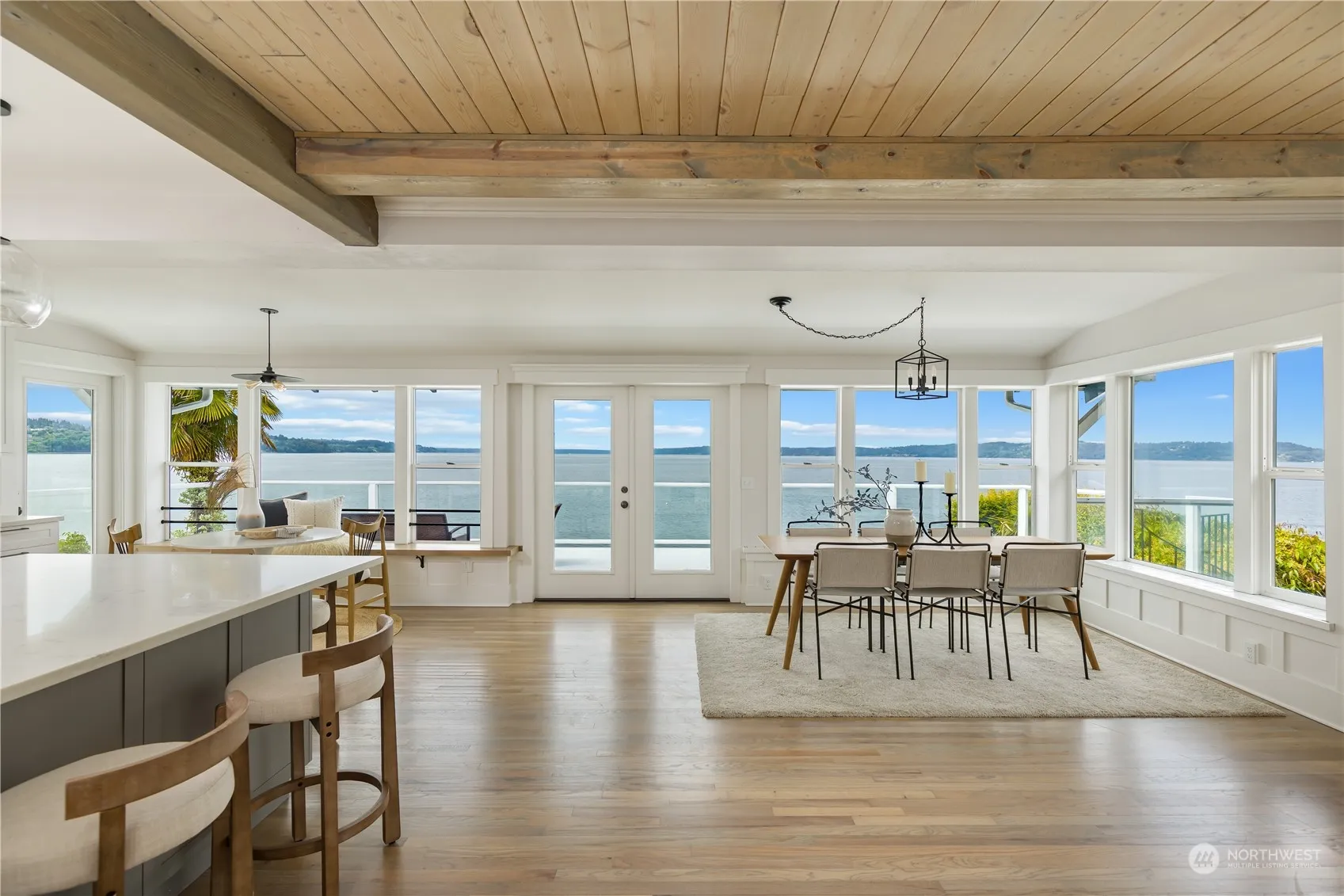Waterfront living awaits: well-appointed craftsman home on the Puget Sound in the Woodmont Community. Walls of windows and incredible views from every level. Open and airy main floor with exquisite kitchen; french doors welcome the perfect Pacific Northwest scenery inside. Light-filled primary suite with balcony. Full second kitchen and additional living space on the lower level. 100 ft of shoreline along a private beach; bayside pickleball court and buoy. Oversized lot + detached 2-car garage (w/ flex space). Woodmont Country Club membership includes access to boat launch, private trails, small boat storage, and more. A sophisticated and inviting home adorned with world class views. Welcome home!