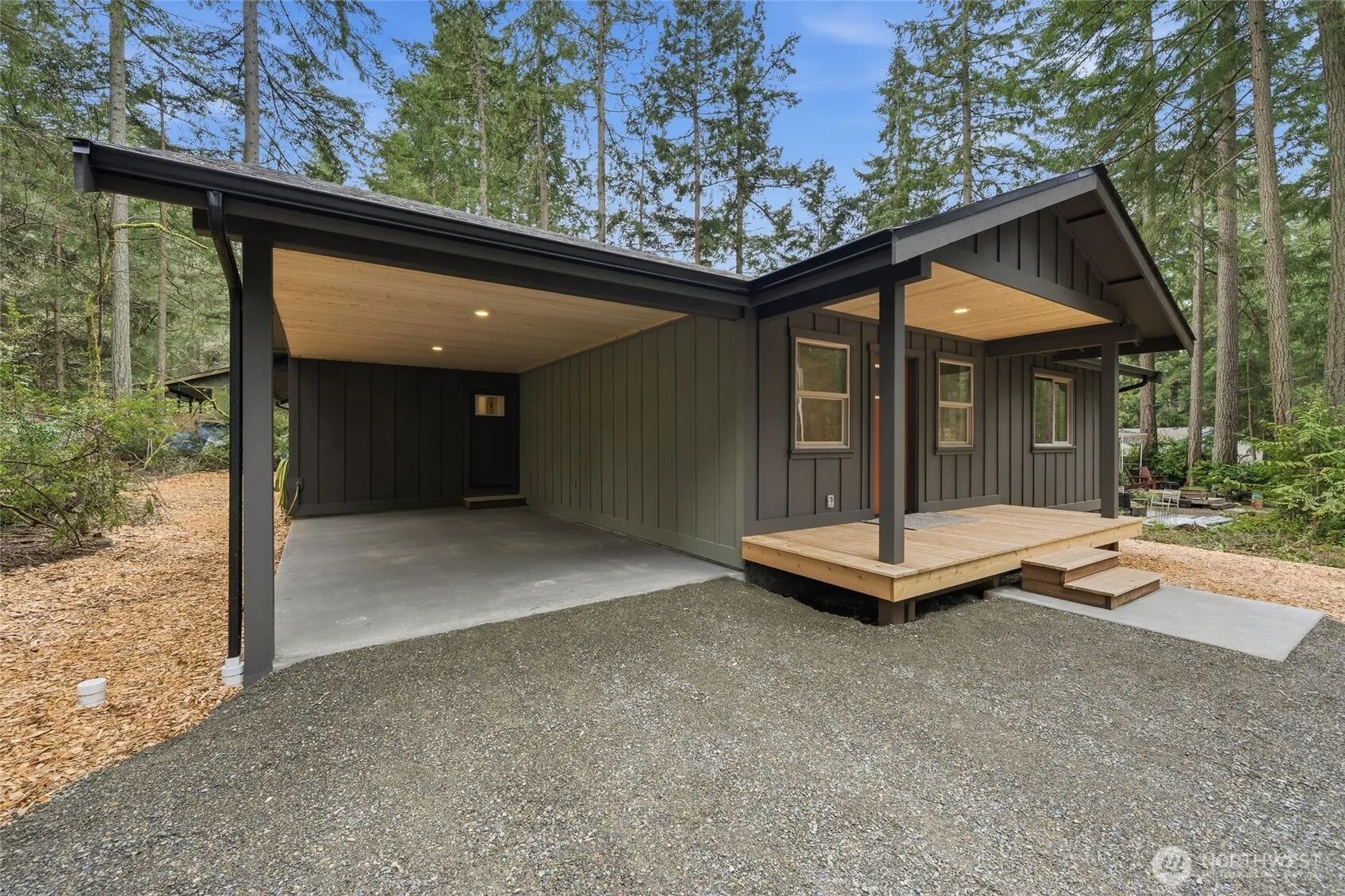 He did it again! Another beautifully crafted home on Anderson Island by a builder known for quality you can see and feel the moment you walk in. Step onto the covered front porch and into an open, inviting floor plan designed for both comfort and connection. The kitchen is a standout, featuring quartz countertops, stylish finishes, and a seamless flow into the main living area—perfect for entertaining or everyday living. Durable luxury vinyl plank flooring runs through the main spaces, complemented by solid wood doors and trim that add a level of craftsmanship that’s hard to find. This 3-bedroom home offers a functional layout with well-sized rooms and thoughtfully designed bathrooms featuring ceramic tile and quartz surfaces. The primary suite is a true retreat, complete with private access to the covered back deck—perfect for enjoying a quiet morning or unwinding at the end of the day. Outdoor living was a priority here. Both the covered front porch and back deck feature beautiful pine tongue-and-groove ceilings, creating a warm, elevated outdoor space you’ll love spending time in. The covered back deck offers year-round enjoyment, while the yard provides a cozy fire pit with space to relax and make your own. A carport with a concrete floor—also finished with matching pine tongue-and-groove ceiling—and a powered 10×12 shed add incredible flexibility for parking, storage, or hobbies. Located in the Riviera community with access to golf, lakes, dining, and more!