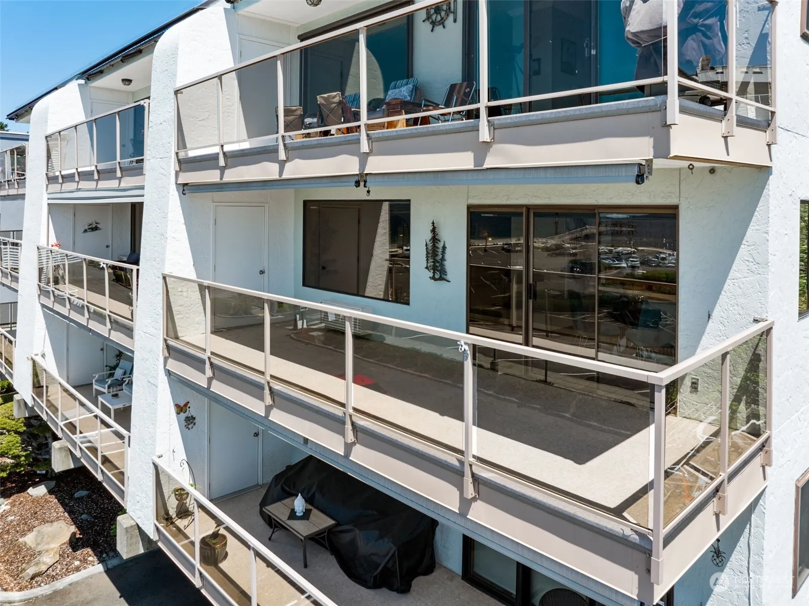Endless views meet an everchanging landscape – soaring eagles, snow capped peaks, weekly regattas. Captivating West/South facing all on one level just steps to the marina and beach park. Thoughtful design takes advantage of the views and natural light created by the corner unit location. Entertaining is seamless as living, dining, and kitchen flow from view to view. Custom built in cabinets offer functional focal points for favorite glassware and art. Corian counters, stainless steel appliances, Updated primary suite with step in shower and walk in closet. Private lanai optimizes indoor/outdoor living. Watch winter storms roll through! Listen to the clang of the mast, see whales breach, hear the joyful sounds of starfish discovered!