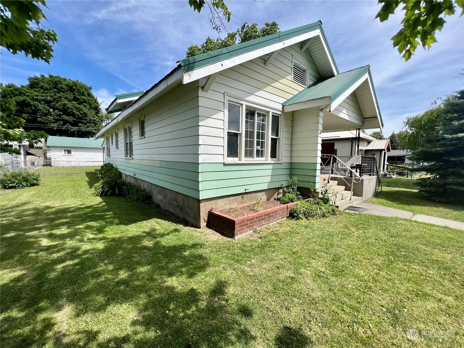 1928 Craftsman with covered front porch and fully fenced yard. The first floor of the home offers three bedrooms and a bathroom with walk-in shower. Open living room and dining area with wood stove for back-up heat. The kitchen opens up onto the enclosed back porch/storage room which leads out to a covered patio. Downstairs has multiple storage rooms, a finished room that could be used as a den or second living room, and a large utility area that houses the washer/dryer. Detached garage/workshop with alley access, plus additional parking located at the back of the property.