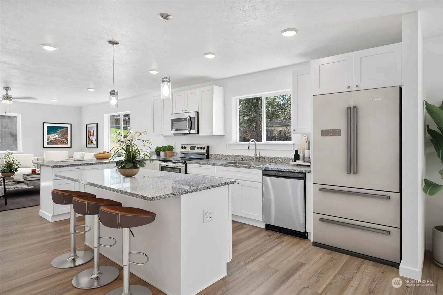 New Construction ready to move in! This home features the popular open concept and is light & bright with slab granite counters and eating bar open to the Great Room. Convenient main floor living with 1662 sq.ft., 3 bedroom 2 Bathrooms. Spacious primary suite with walk-in closet, bath with granite counters. Energy efficient with mini-split electric heat pump for heat & cooling, and high efficiency water heater. Located in a quiet neighborhood of custom high-end homes 10 minutes from downtown shopping and restaurants with close proximity to Amazon, and Spokane international Airport.