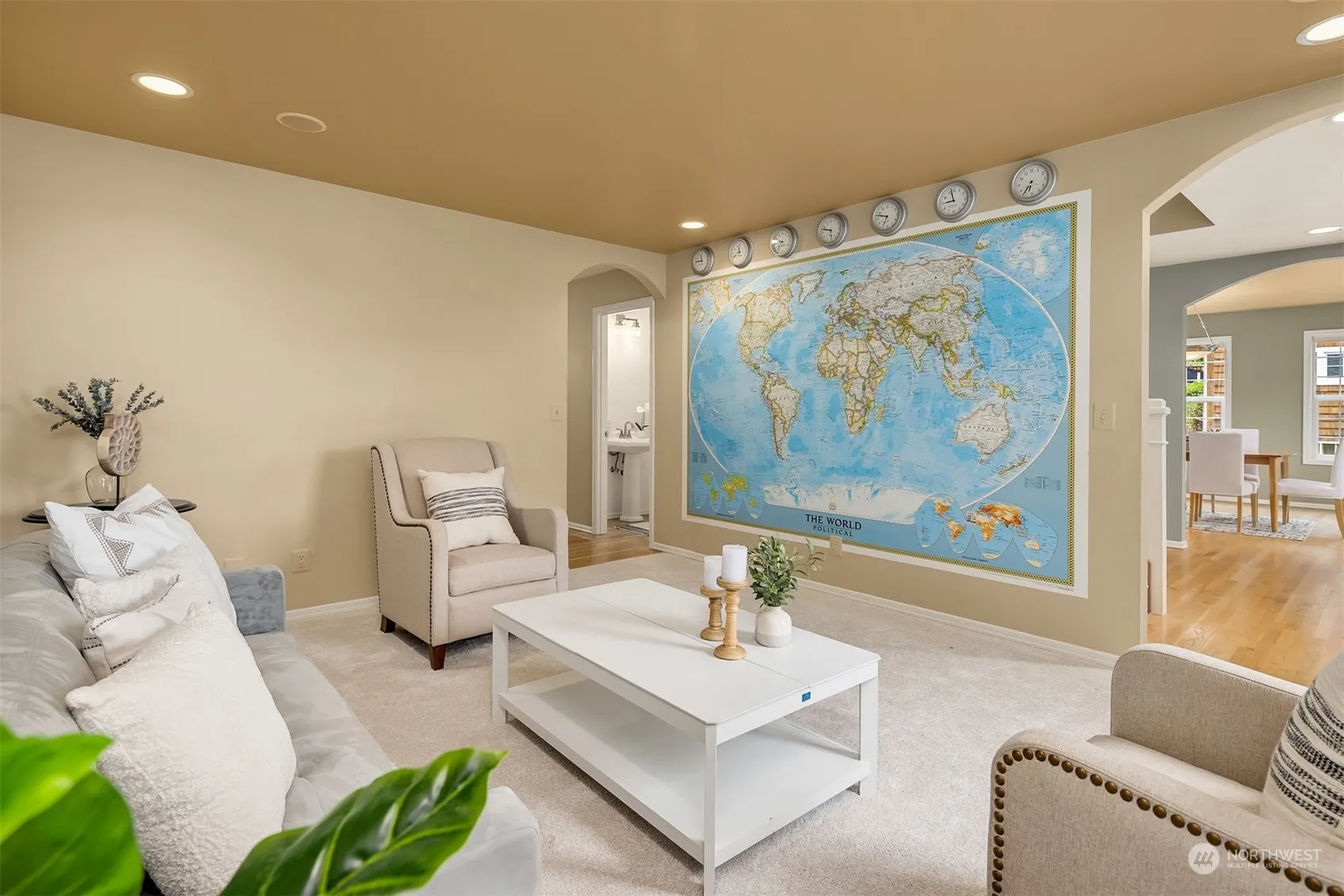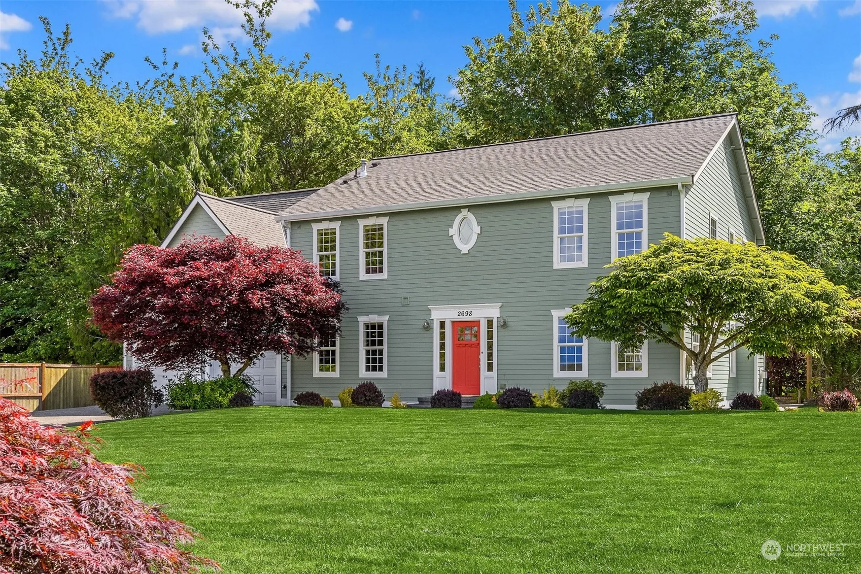 This attractive, colonial style home is well sited on a sunny lot oriented to take advantage of the captivating Olympic Mountain view. Well maintained with recent updates, this gem has a terrific floorplan with generous spaces for entertaining, indoors & out, year round. A large kitchen opens to a dining area & living room with a cozy gas hearth. 2 bonus rooms & an extra large garage allow for space for a home office(s) & shop. An attractive owner’s suite has a luxe ensuite bath & laundry. Enjoy the spacious, level, front yard & a private back yard patio, with a hot tub, that looks out onto the tranquil & private wooded setting. The desirable Lillehammer neighborhood is close to schools, shopping, local ferries & downtown Poulsbo amenities.
