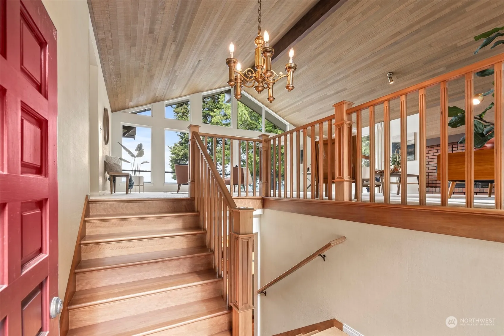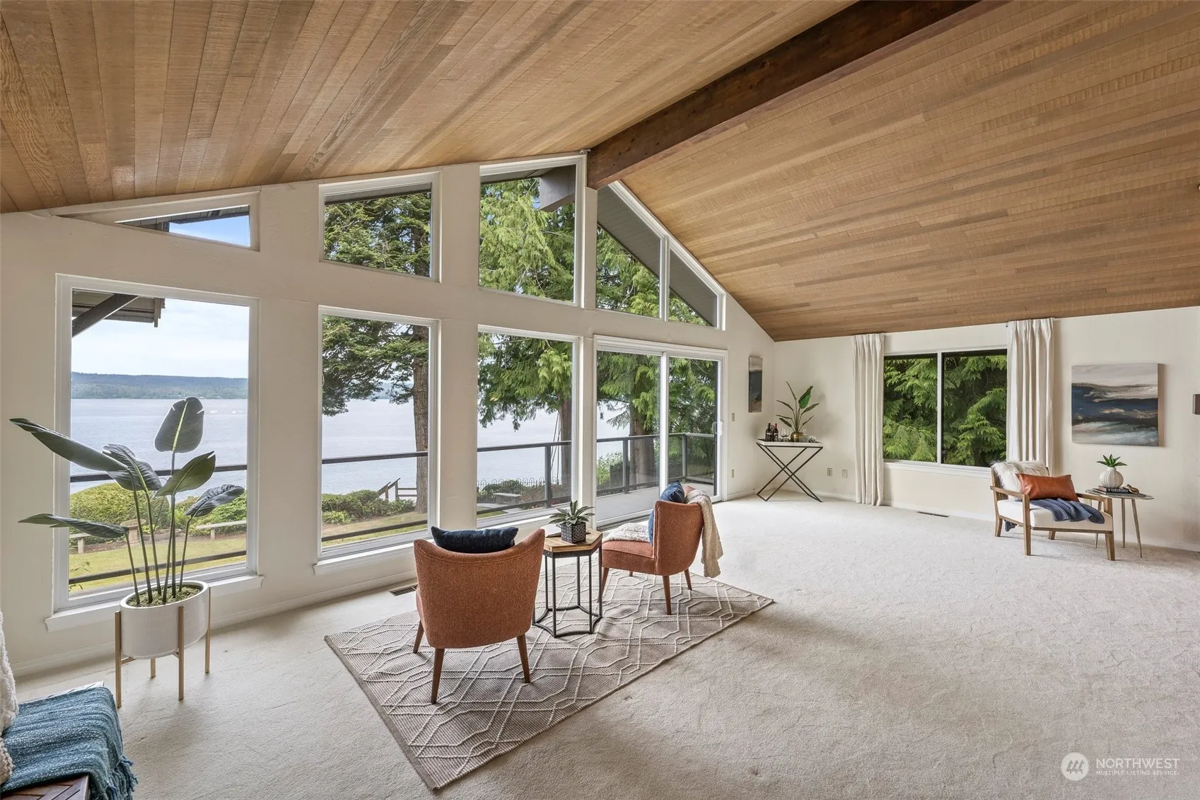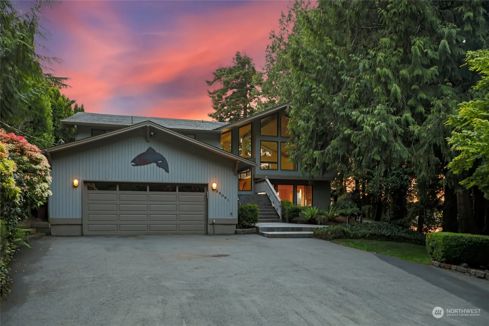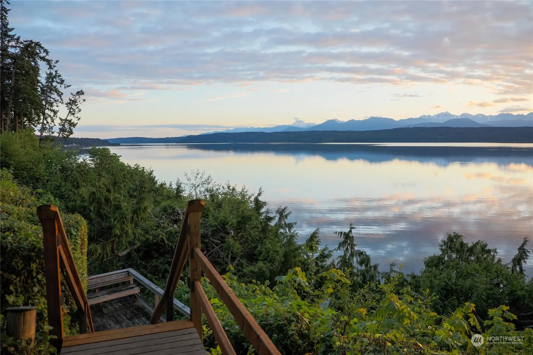 Breathtaking waterfront home perched high on the Hood Canal with spectacular views from almost every room. Welcome to this charming home with cathedral windows overlooking the captivating hood canal and beautiful mature landscaping nestled around the home. Downstairs find an open floor plan with living room, dining room and kitchen facing the water with a beautiful large patio for entertaining. SS appliances, kitchen island, sauna, tile flooring. Primary suite offers a balcony overlooking the water and mountains. Embrace the great outdoors with your private access to the beach where you can enjoy gorgeous sunsets all summer long. Located in a quiet serene neighborhood and just minutes to downtown Poulsbo, ferries, restaurants, and shopping.