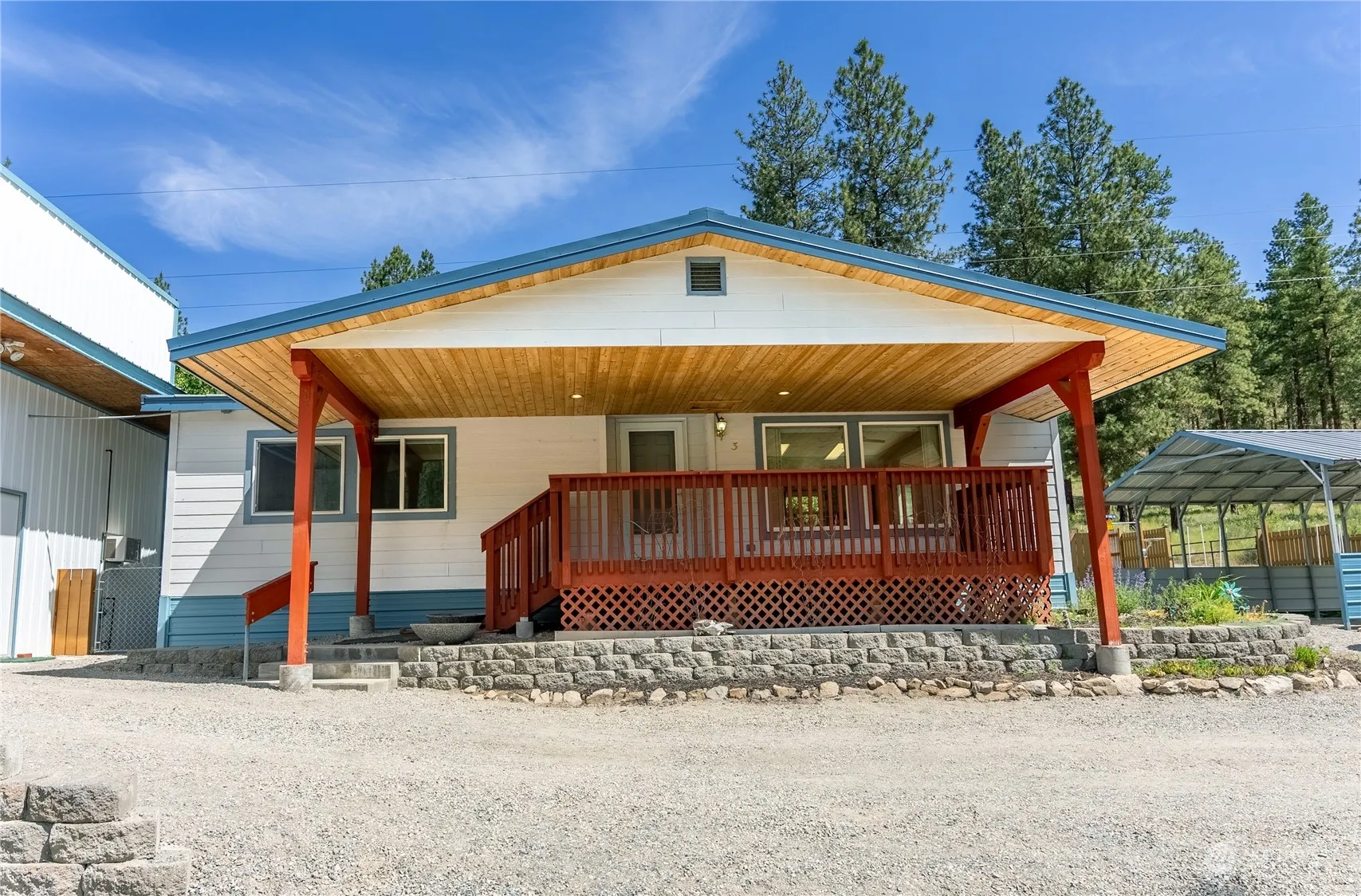 Freshly updated Loup Loup 2 bedroom, 2 bathroom manufactured home that sits on a large lot, bordering the Okanogan National Forest. It has a new metal roof. New flooring. New washer/dryer. Updated appliances. An open concept living/kitchen space. Propane fireplace. Heat pump with ice cold A/C. Large fully fenced back yard with fruit trees and easy maintenance landscaping. Covered front deck. Covered back porch is wired for a hot tub. The well equipped detached shop has tall ceilings, a loft, benches, wood burning stove, propane heater, and a generator. Shop also has a finished hobby/insulated storage room. This 20,473 sq. ft. lot has plenty of room for your toys. Detached carport. RV parking spot w/50 amp service. A great place to call home