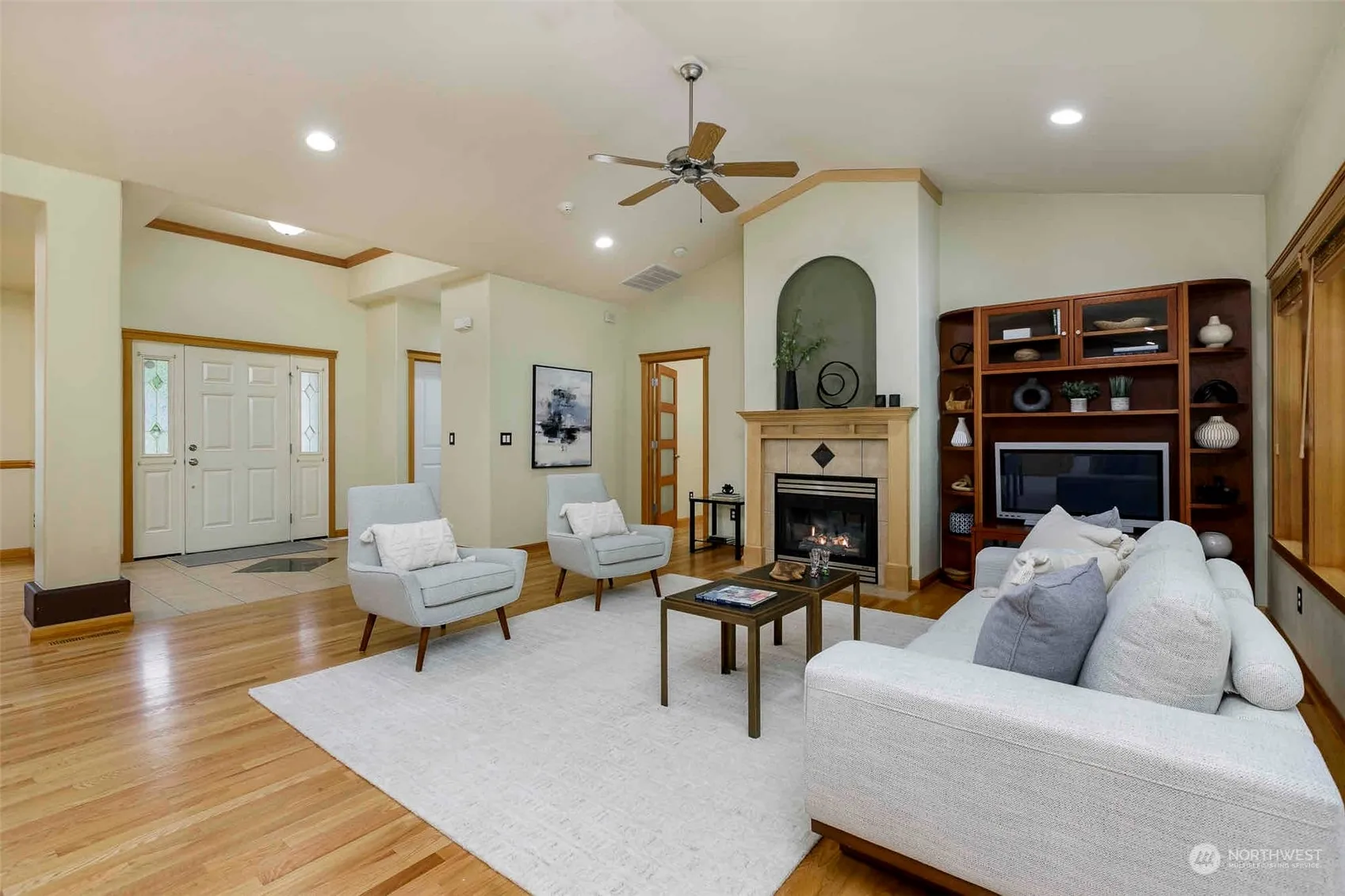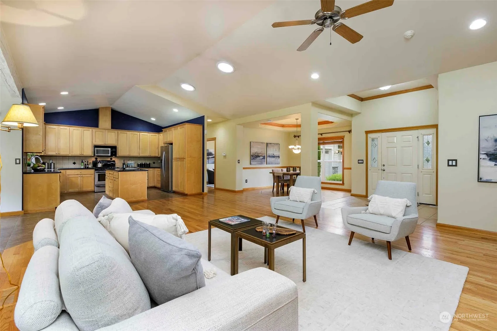 Welcome to this beautiful one-level home in Aspen located on a serene one-acre lot. This home features a spacious great room with gas fireplace, hardwood floors, and vaulted ceilings. The dining room is perfect for hosting large gatherings. The expansive kitchen features a gas range, granite countertops and breakfast nook. The primary bedroom boasts an en suite bath. The light-filled den is perfect for remote work. This home includes two additional generously sized bedrooms, a full bath, and a spacious laundry room. The oversized three-car garage offers ample work and cabinet space. An entertainer’s dream backyard with covered deck, patio, and fire pit. Conveniently located near shopping, dining, and numerous recreational activities.