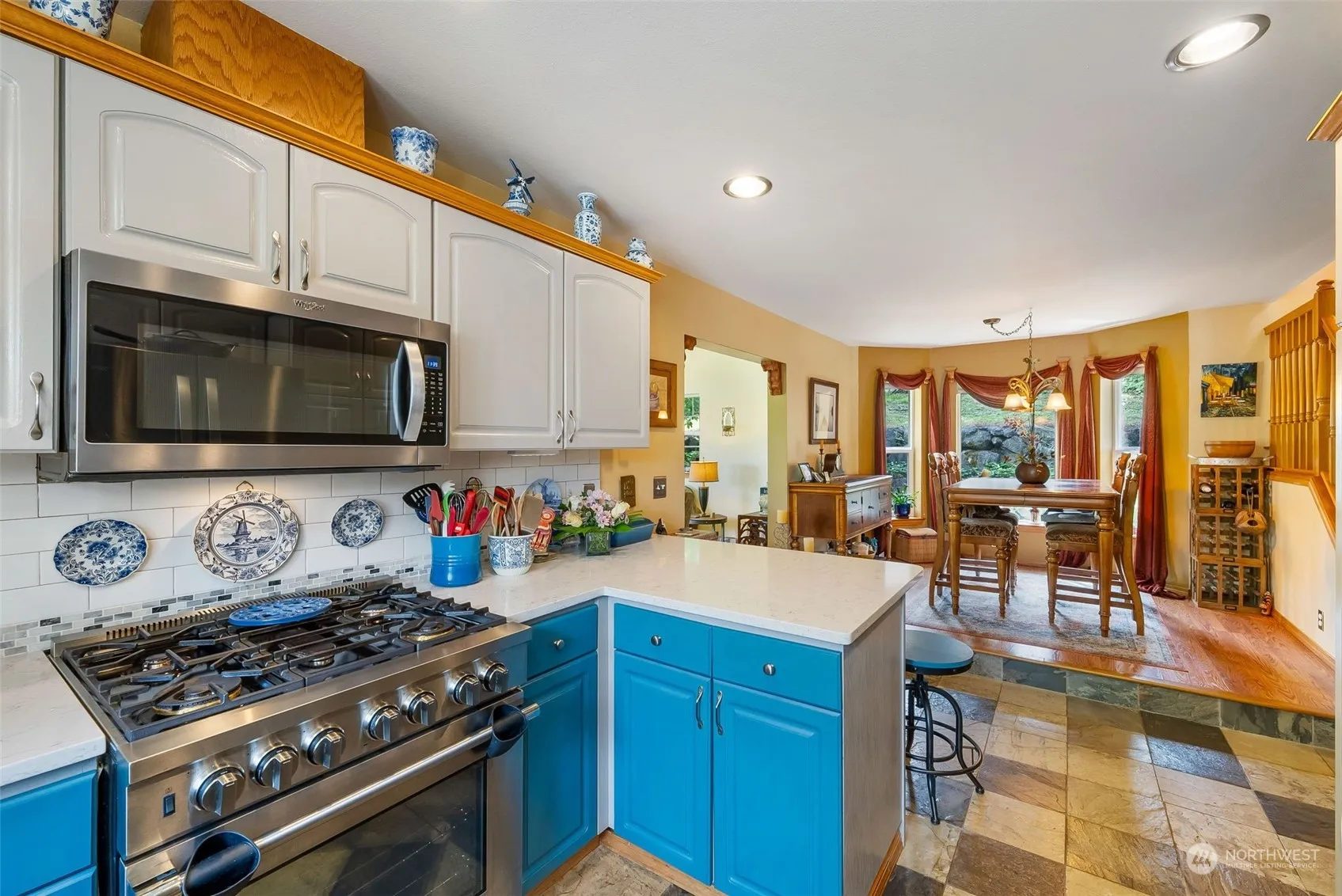 Welcome to this artful Poulsbo charmer, located in beautiful Forest Rock Hills. Here you’re greeted by mature Japanese maples & delightful covered front porch w/ craftsman accents. Step inside to a gorgeous slate floored foyer that segues to EZ flow & stylish living spaces. You’ll find a unique dining room platform, beautiful living room w/ soaring ceiling, gas FP & designer touches. A gourmet kitchen offers pro model SS appliances, quartz surfaces & ample storage. A cozy den w/ exterior access on main floor, a cute WC & laundry area that leads to a HUGE garage (a must see). A full bath & 3 bedrooms upstairs; the lg. primary is a quiet ensuite oasis featuring walk in closet, jetted tub & separate shower & dual vanity. Quality throughout.