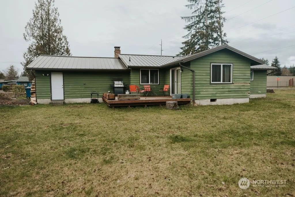 Situated on a generous .421-acre parcel, this charming 3-bedroom residence boasts recent updates: The exterior showcases newer siding and a sleek metal roof, ensuring durability and low maintenance. Enjoy the luxury of outdoor living on your recently constructed back deck, overlooking the expansive and private backyard – the ideal setting for entertaining guests or simply unwinding in serenity. Inside you will find a spacious living room and just off the kitchen a family room with access to the deck. The Kitchen has newer oak cabinets and appliances, The primary bedroom features a cozy ensuite bathroom. A single car garage with a separate area for the washer/dryer and pantry.