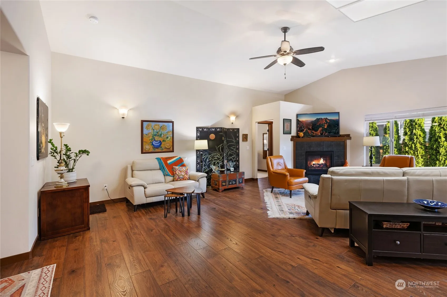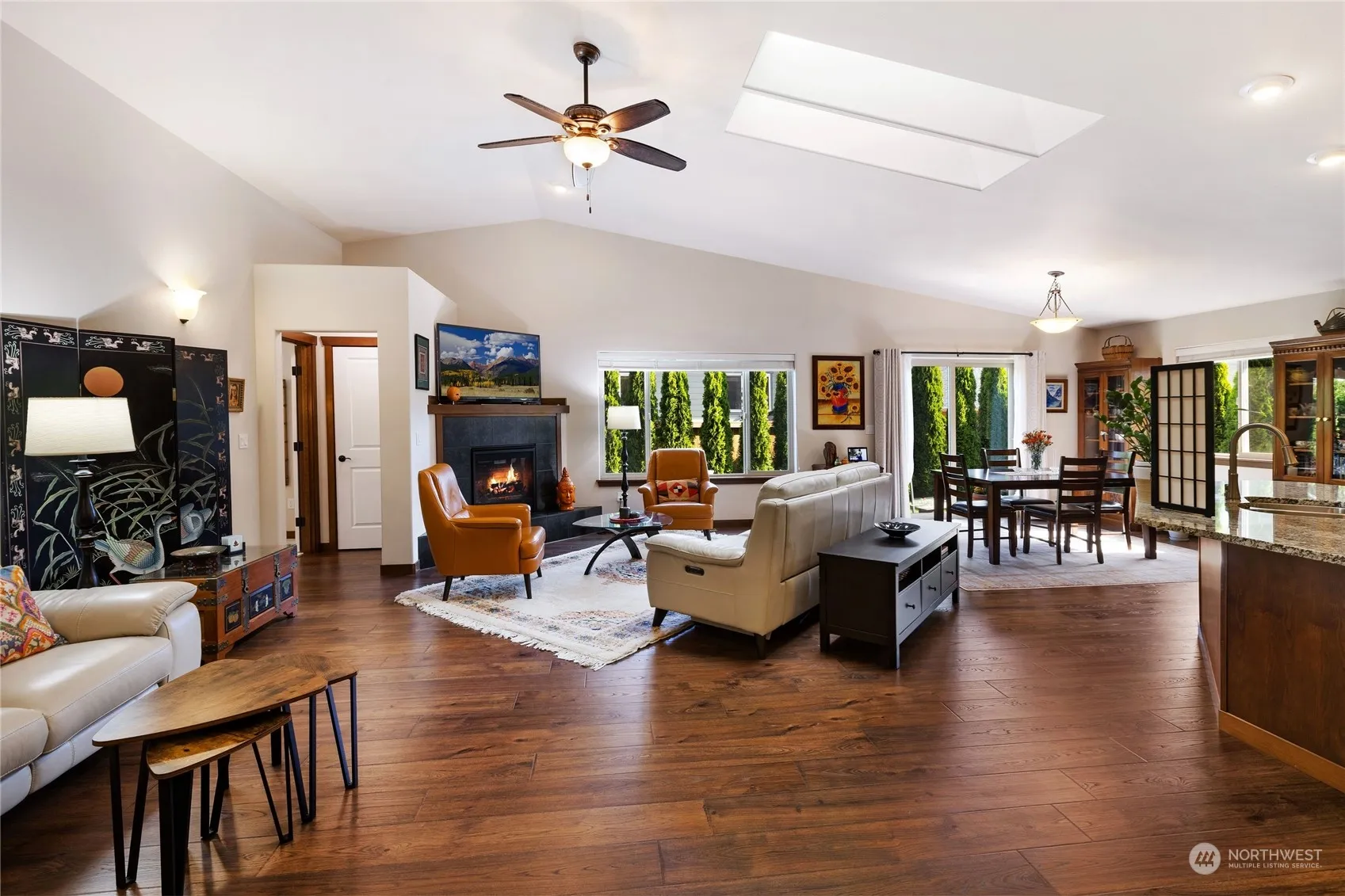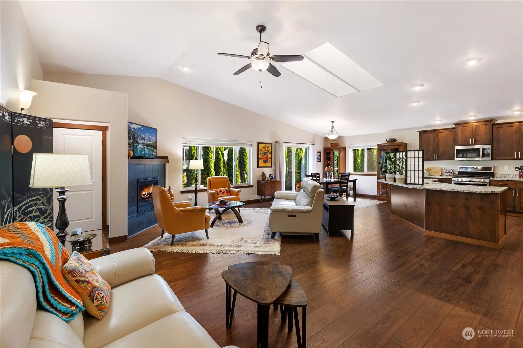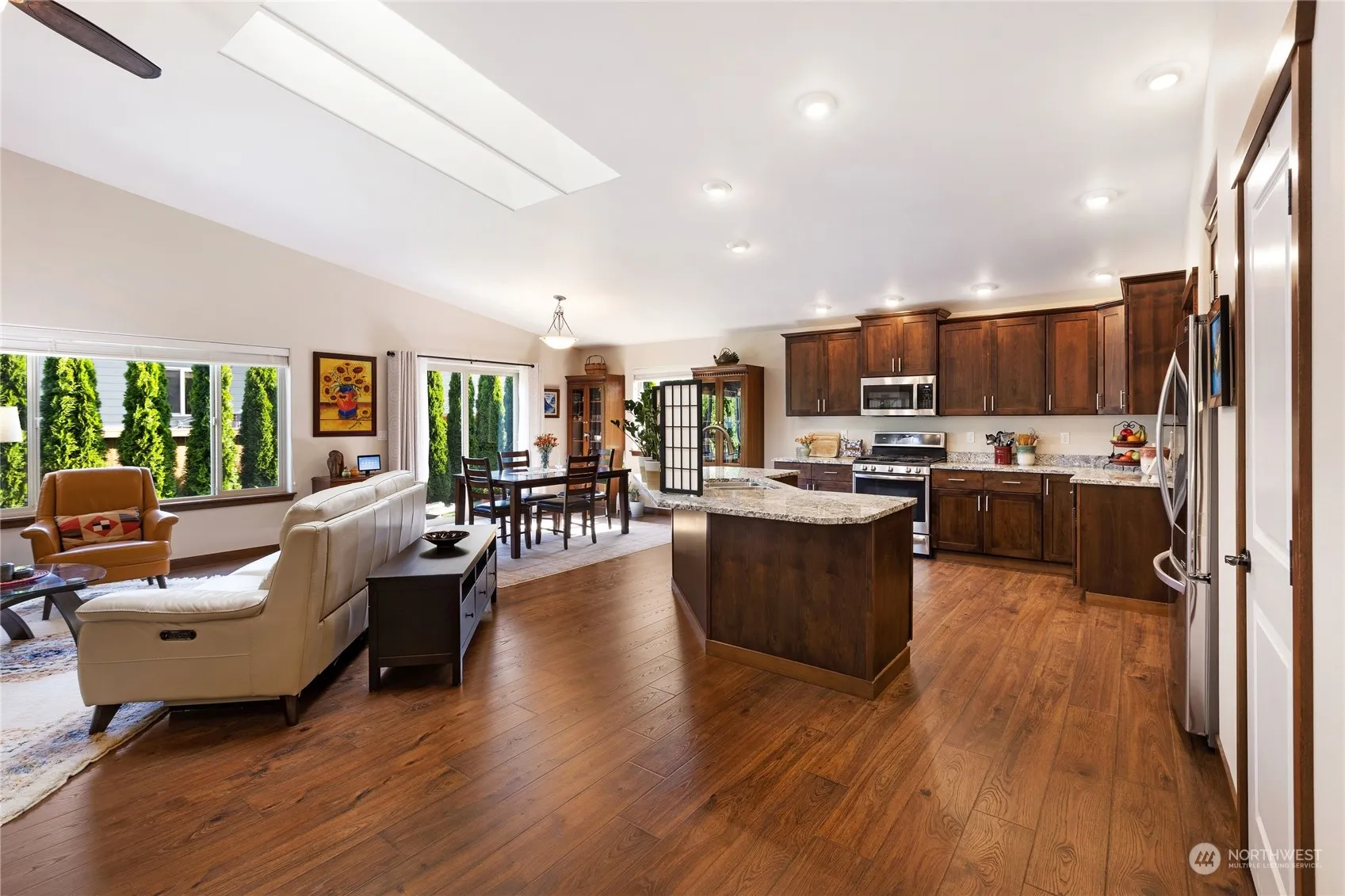 Pleasant single-story home near all Poulsbo has to offer. Close to stores & amenities. Walk to schools. Liberty Bay waterfront nearby. Easy drives to ferries, Silverdale & Hood Canal. Quiet neighborhood. Great Room floorplan w vaulted ceiling flows easily through living, kitchen & dining areas. Gas fireplace. Generous kitchen w ample cabinets, counter seating, stainless appliances, gas range, & walk-in pantry. Spacious primary bedroom w 5-piece ensuite & 2 large walk-in closets. Secondary beds & bath separate from primary. Office off entry. Great closets & storage throughout. Separate Laundry Room. Large 2-car garage. Level, beautiful yard, fully fenced w large patio & gas BBQ hook-up. No yard sign. Seller is licensed WA Real Estate Broker.