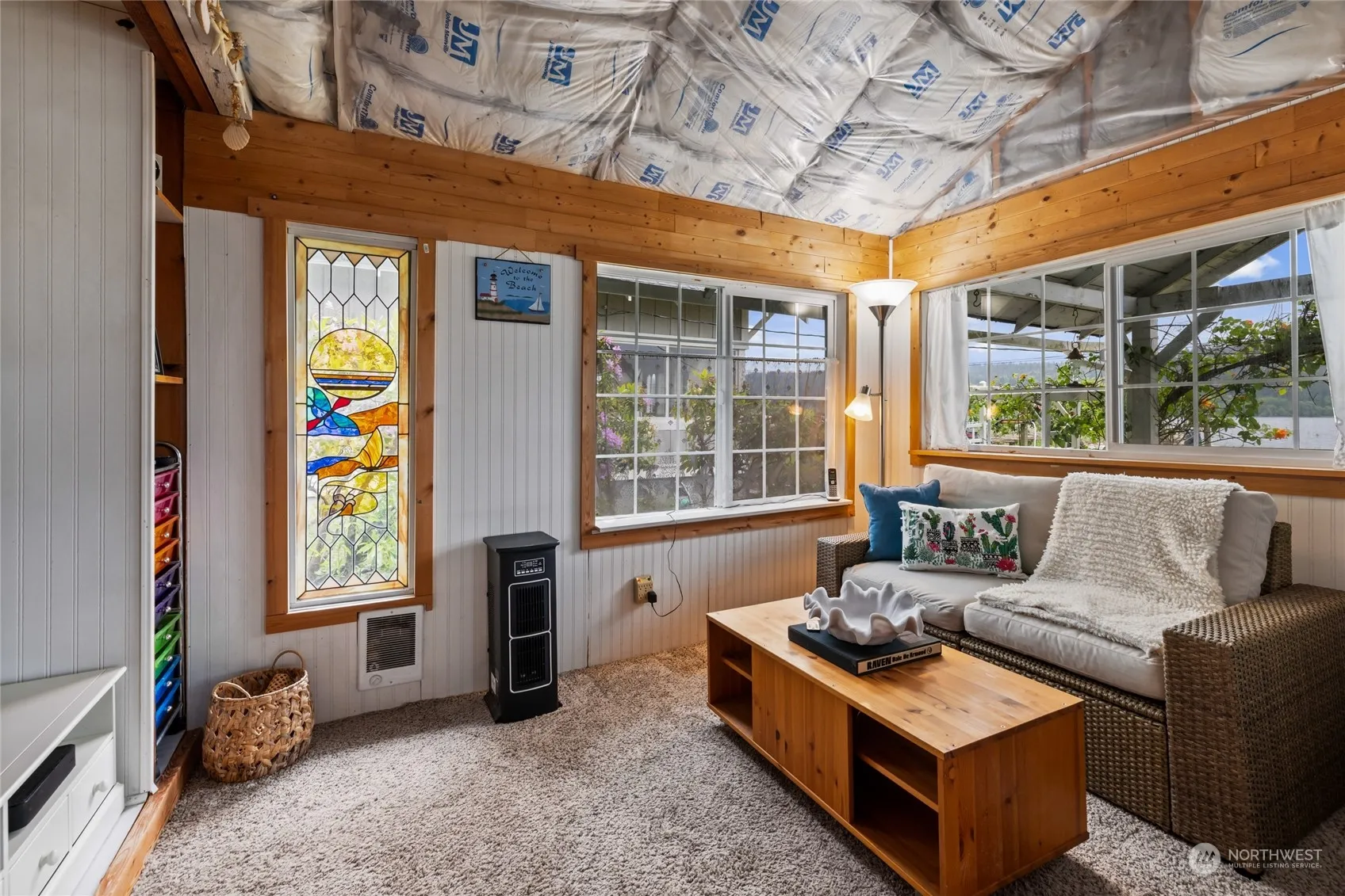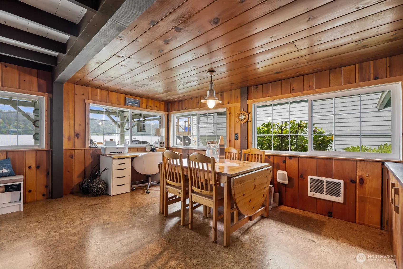 Picturesque waterfront Island living with sweeping water views and direct access to the shoreline. It’s a dream for those seeking serenity and outdoor adventure. The large, covered deck provides a perfect spot for morning coffee or evening sunsets, while the fireplace ensures cozy comfort during colder months. Charming features include built ins, beam ceilings, cedar walls and ceilings, french doors and lots of windows bringing in natural light. The additional room on the upper level, complete with a balcony, offers even more opportunities to soak in the stunning surroundings. Plus, the extra storage sheds provide practical convenience. It is an idyllic retreat for anyone looking to embrace the Pacific Northwest lifestyle.