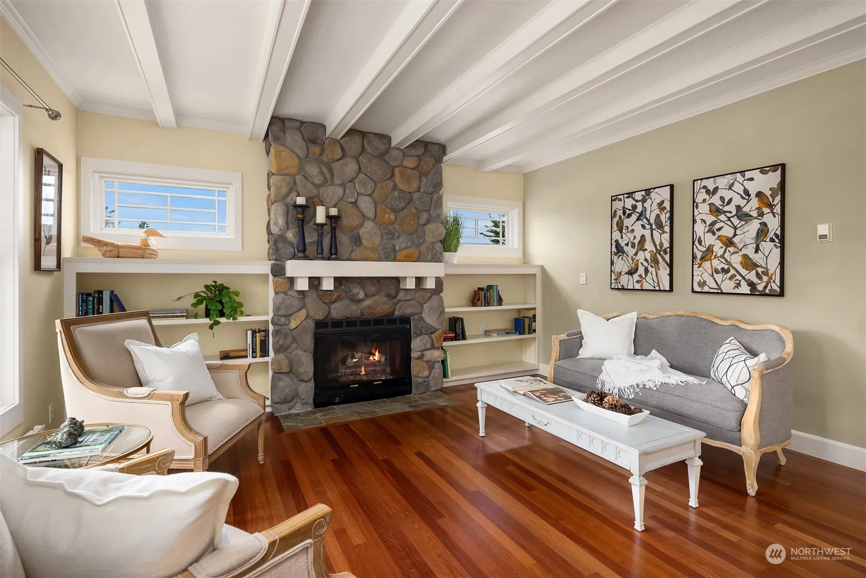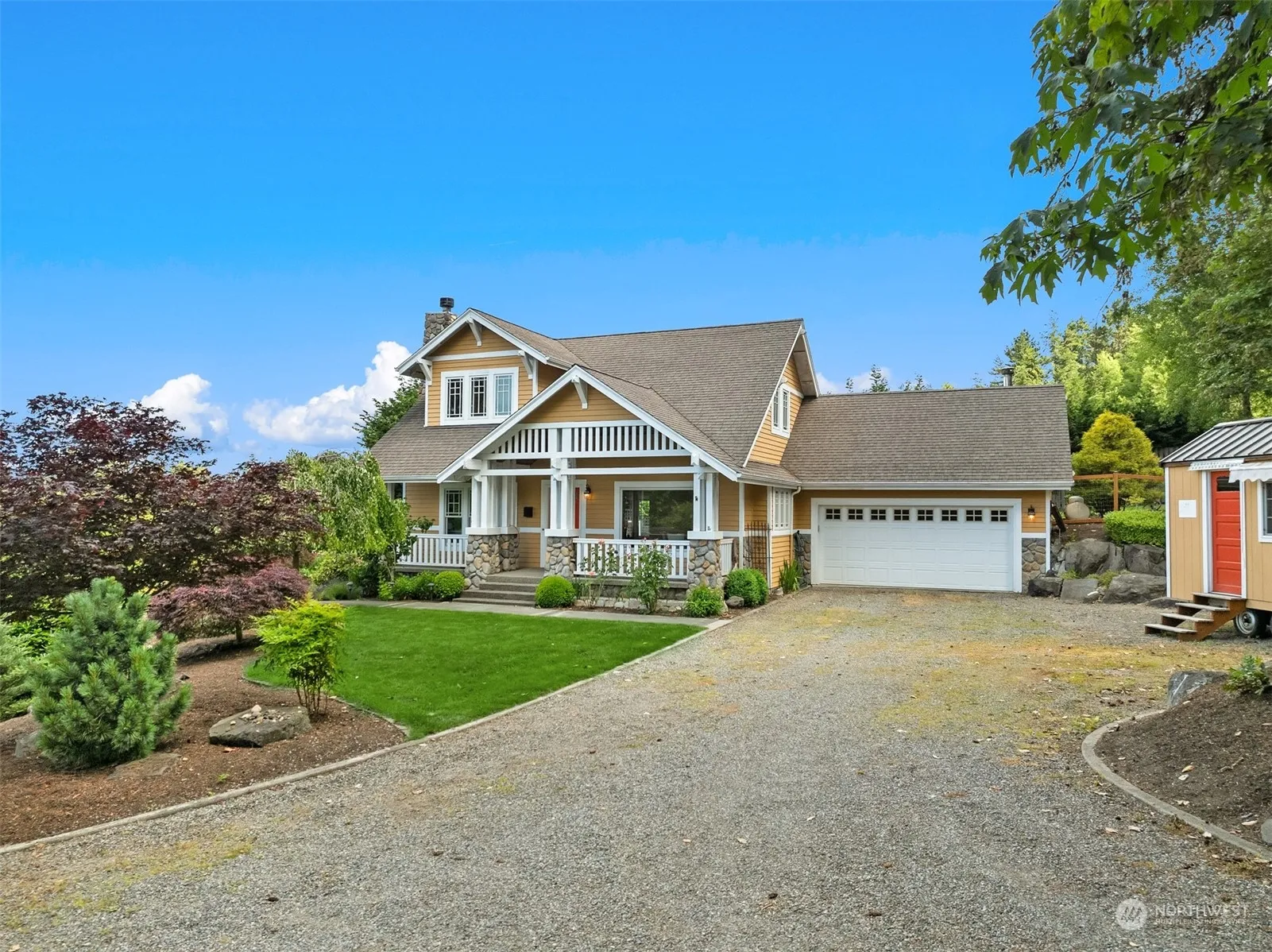 This picturesque, custom built Craftsman on 1.2+ acres is even more charming in person. Be prepared to fall in love with the countless artisan details. A crowd pleaser, the large covered porch is flanked by a handsome river rock & timberframe entryway. Upon entering you will notice the beautiful millwork, river rock hearth & attractive formal dining room. The well appointed kitchen features tasteful finishes, a large island, a butler’s pantry & opens to a cozy living room & breakfast nook. A large deck overlooks the expansive, sun drenched acreage & the pretty West facing view. Mature, low maintenance landscaping, an outdoor firepit area & a brand new Pergola make enjoying this special spot a breeze. Terrific location, close to amenities.