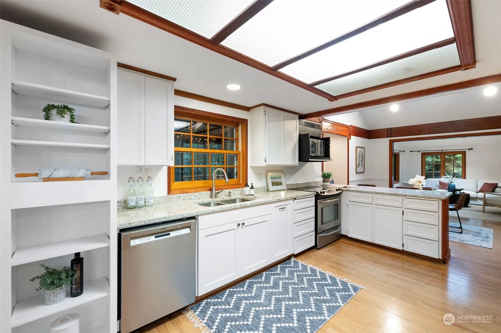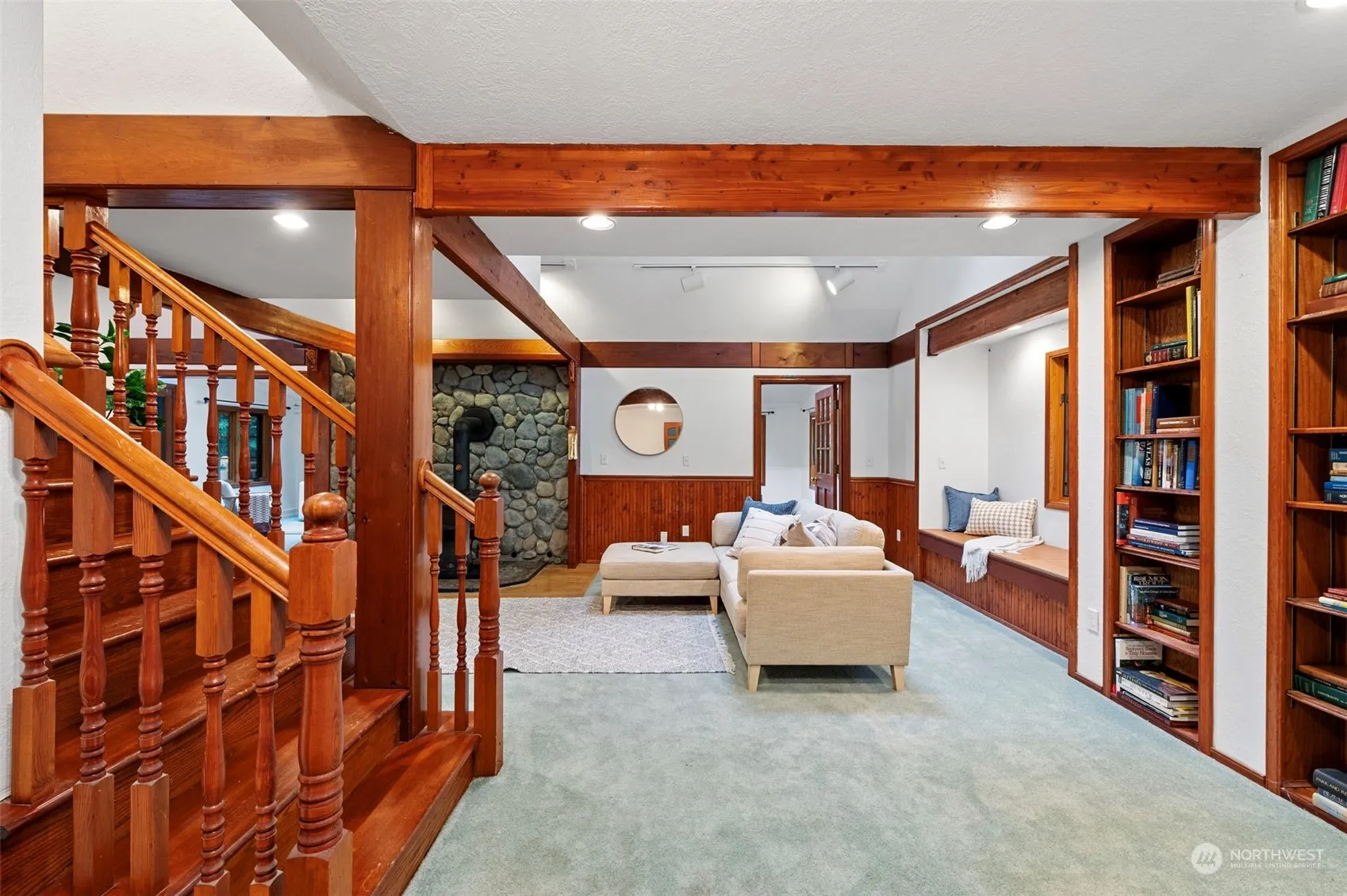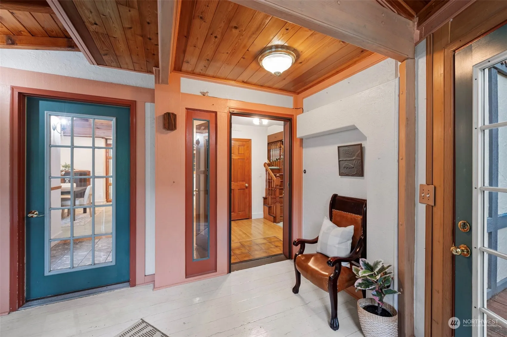 Discover the perfect blend of elegance and comfort in this large Bavarian-designed custom-built home, among serene trees with a year-round creek flowing through your backyard. This multi-generational home features exquisite millwork and expansive decking two miles from historic downtown Poulsbo. The main floor features tall, light-filled ceilings, a bedroom & updated bathroom, while the lower level offers a fully functioning apartment, ideal for short or long-term rentals. Upstairs, find additional bedrooms and large studio with a kitchen, perfect for multi-generational living, Airbnb, or Bed and Breakfast. Updates include a new roof and skylights (May 2024), a new heat pump for the mini-split unit, and a new water heater (June 2024).