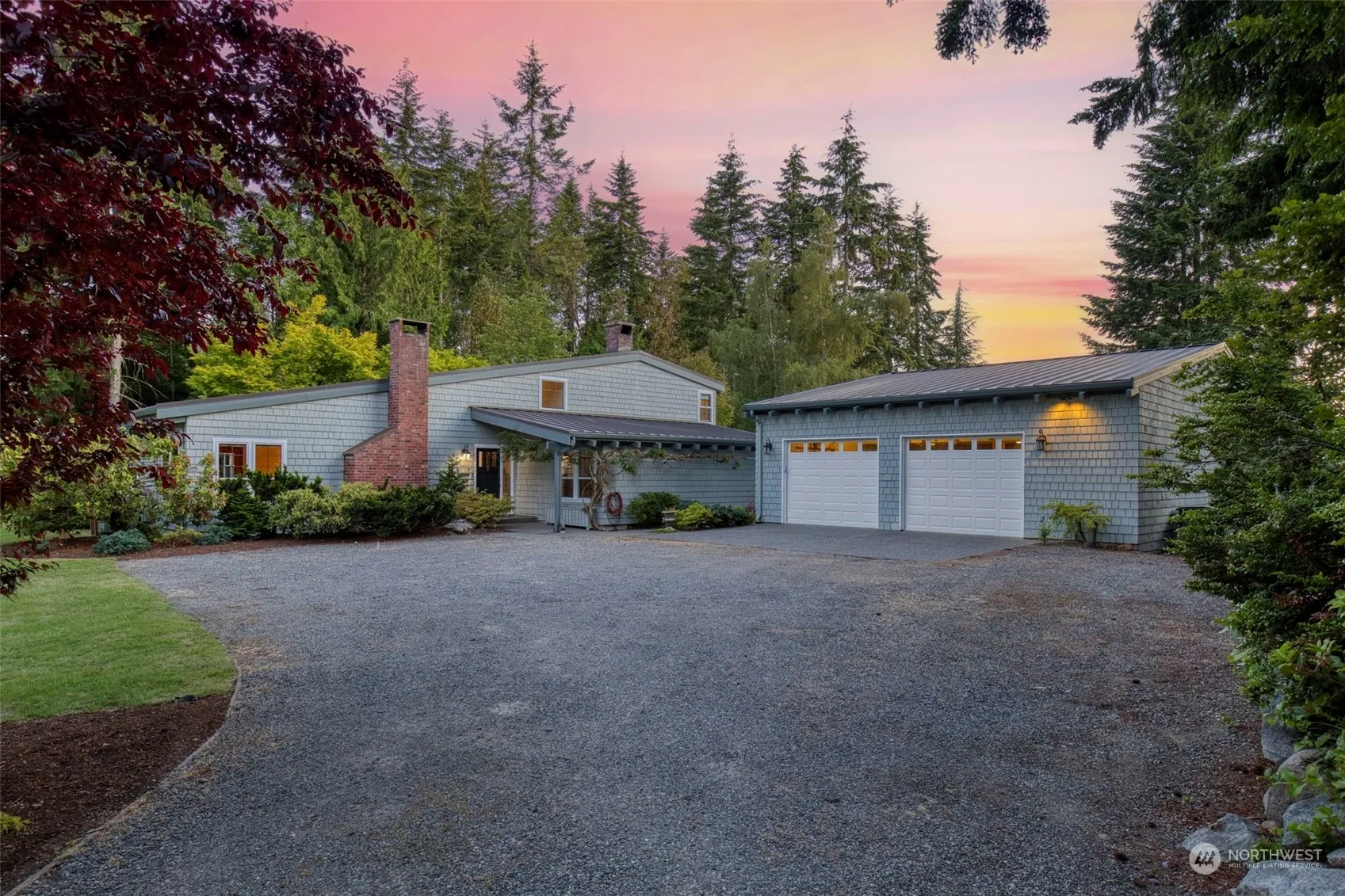 Impeccably maintained inside and out, you’ll fall in love with this peaceful setting. Exposed beams, vaulted tongue in groove ceilings, and wood wrapped windows. New luxury vinyl flooring, and fresh paint throughout. Sit around the firepit, or relax in a lawn chair and enjoy the pink sunsets over the Olympic mountains. A 20×30 shop, a 4×8 workbench, and a large 10×30 storage loft. Garage also boasts a finished 20×30 basement with an egress window. Framing exists for the addition of doors and/or windows on the west wall of the garage, facing the mountain view. 8×10 potting shed,10×20 chicken coop, and a 30×30 covered outdoor chicken run. Conveniently located minutes from downtown Poulsbo and freeway access, but with an idyllic rural feel.