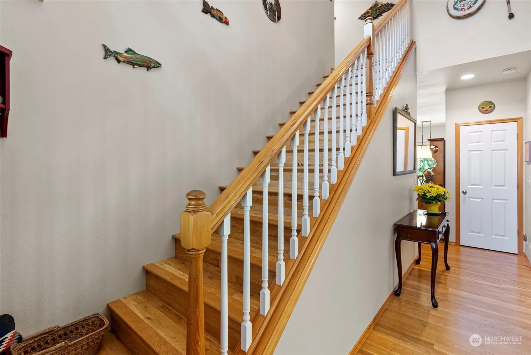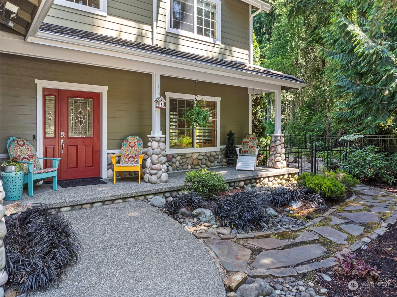 Welcome to your dream home in desirable Evergreen Ridge! This beautifully maintained 2-story residence features a carpeted living room, modern kitchen with high-end stainless appliances, slab granite counters, and a cozy dining area. The great room and entry boast hardwood floors. Upstairs, find generously sized bedrooms, including a main suite with private bath. The daylight basement offers a huge family room, large media room, full bathroom, and bonus space for an office, gym, or guest suite. Wired for a generator, located near schools, shopping, and parks. The fully fenced yard with a sprinkler system is perfect for outdoor living with seasonal peekaboo views of the Cascades and Liberty Bay. Schedule a viewing today!
