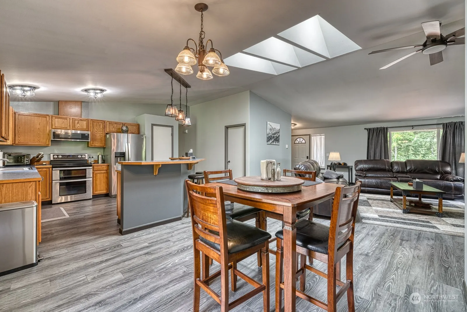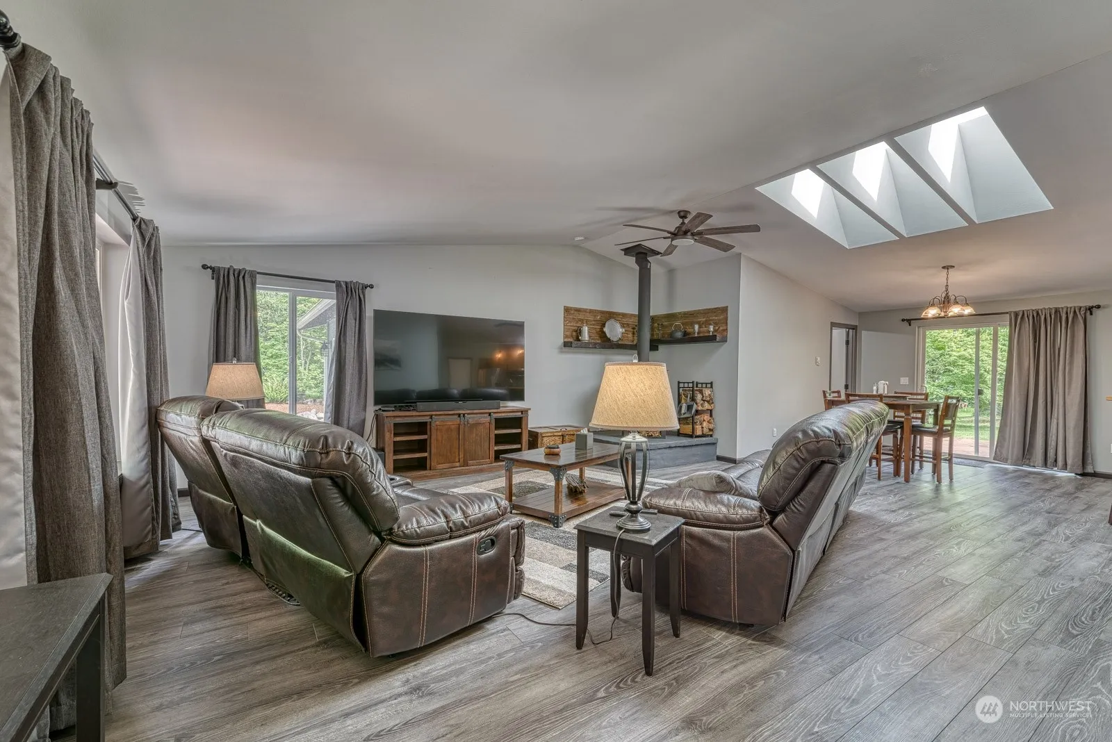 Tucked away in Poulsbo this 3 Bedroom with additional Flex room for work from home area, craft room 2 full baths 2112 SqFt rambler with 2 car garage sitting on 4.7 Ac with mini-ATV trails in the back of property, Covered shed for riding lawn mower or tractor, New roof installed in 2024. With this open concept floor plan, you are always able to be a part of the conversations while preparing meals. New commercial grade LVP through out,new shower stall installed in primary bath with separate soaking bath. Next to Bangor and between Silverdale and Poulsbo makes it a short hop to many amenities & Seattle Ferry. Cabinets in garage conveys with sale.