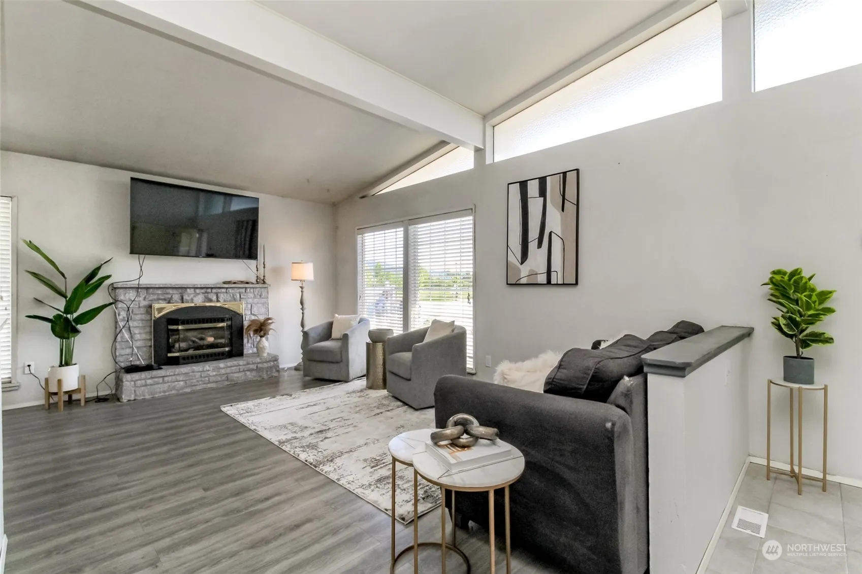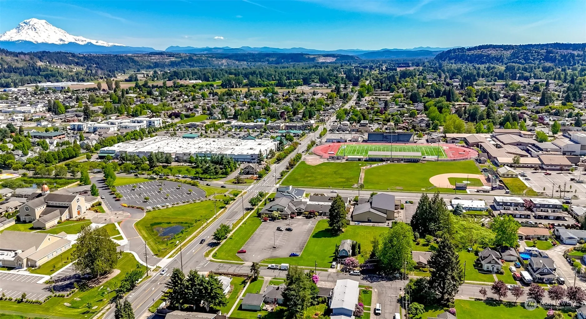 Set eyes on this downtown Sumner home, boasting Mt. Rainier view & blocks from Midtown Station & amenities. Entry greets you w/open concept living & vaulted ceilings. Large kitchen flows to dining & living w/stone gas fireplace. Spacious bedrooms incl. Owners suite w/update tile bath & walk in shower. Lower level offers large private flex space for family room, home office OR 2nd living quarters w/it’s own private access. Complete w/updated furnace, H20 & heat pump! Hang on the enclosed deck, fully fenced & gated yard on a private fully fenced corner lot w/storage shed, garden shed + extra outbuilding. Plenty of parking for cars & toys. Literally walk to town center, shopping, dining, high school & 5 min drive to Hwy 405/167 & Light Rail.