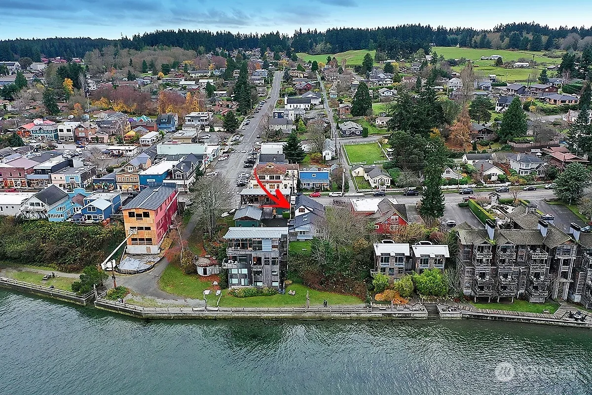 EXTRAORDINAIRILY RARE! Whidbey Island commercially zoned waterfront in the heart of Seaside Langley Village. Build to Highest and best use. Potential destination hotel or mixed use condo community. Panoramic views of the Saratoga Passage and Cascade Mtns. 68+/- ft of medium bank waterfront w/city owned bulkhead. Water & sewer connection avail. This flat to sloped 0.21 +/- acre parcel is sub dividable via short plat under central business zoning. Turbo charge return investment with well-positioned existing building containing 4 desirable spaces. 3 ground level spaces could be transformed to one large 2044 sq ft space + upper 1 BR/1BA 672 sq ft apartment. SELLER FINANCING 4.5% interest rate, 2 year balloon, 30 yr amortize, 50% down.