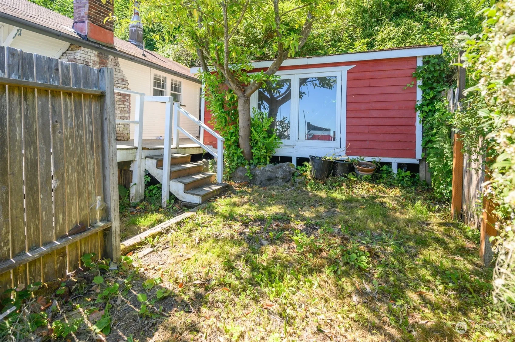 Sweeping views of Puget Sound! Step back in time to this charming 650 sq. ft single bedroom cottage on 45 feet of low bank sandy beachfront at the base of the Vashon ferry dock. Enter via the short and flat beachside path to a 150 sq. ft deck overlooking the beach and ferries. The pleasantly sized living room has spectacular views of Puget Sound, Blake Island, ferry crossings & amazing sunset views behind the Olympic Mountains. Galley kitchen leads to laundry/mud room with access to studio outbuilding. House exterior is freshly painted. The interior of house and outbuilding are in need of updating. Bring the kayaks and explore! Sold as-is.