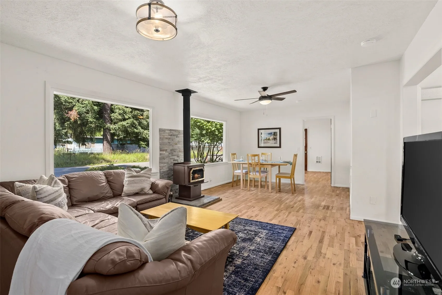 BEAUTIFUL and REFRESHED 3-bedroom, 2-bath gem! Step inside to find a welcoming interior featuring new paint throughout and refinished hardwood floors that radiate timeless elegance. The remodeled baths and kitchen have modern updates, including sleek fixtures and new flooring in the kitchen, laundry, and bath areas. Cozy up to the wood stove on cold winter nights and enjoy outdoor living on the spacious covered patio, perfect for relaxing or entertaining. Carport and Detached Workshop Perfect for storage or hobbies. Located just 15 minutes from Packwood; this home offers plentiful nearby recreation options for both summer and winter! This home is a true must-see!