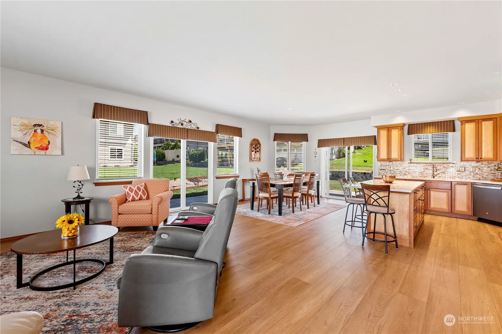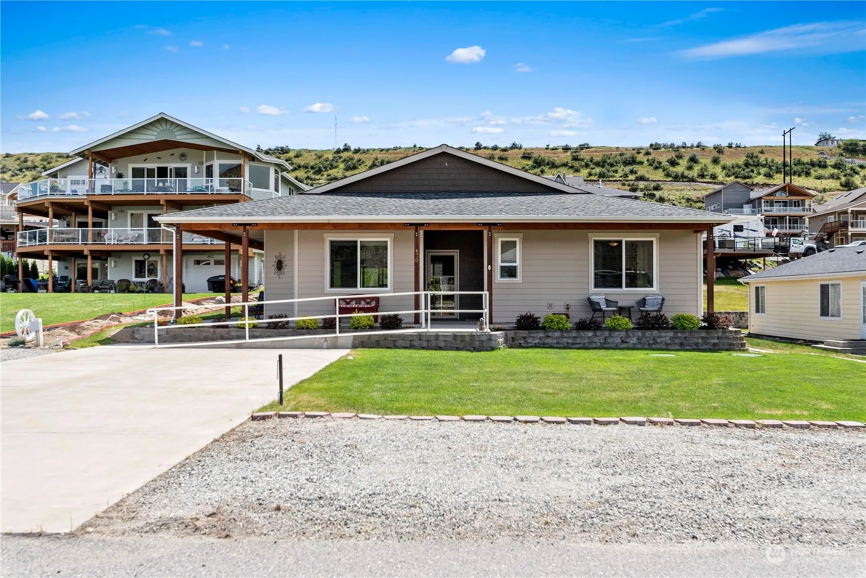 Discover unparalleled comfort and elegance in this single-story ADA compliant Sun Cove retreat. Embrace the peek-a-boo Columbia River view from your inviting front porch. Boasting 2 large bedrooms plus a spacious den, adaptable as a 3rd bedroom, this residence epitomizes versatility. Revel in the allure the seamless flow of the open-concept living, dining, and kitchen areas, adorned with custom cabinets, stainless steel appliances, quartz counters, a stylish tile backsplash and new LVP flooring. The 9′ ceilings enhance the sense of space. Unwind under the expansive covered patio or retreat to the primary suite, complete with a walk-in closet. Community features heated pool, clubhouse, boat launch, marina, parks, tennis courts & much more!