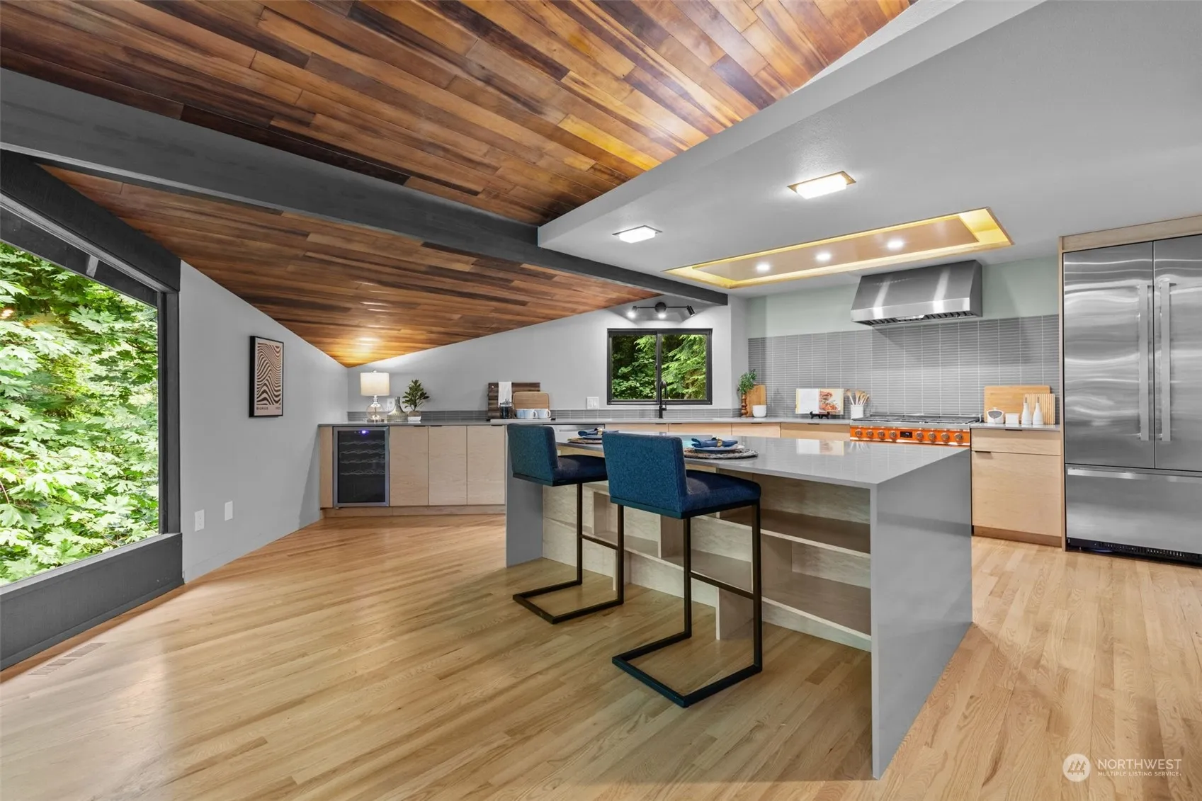 Discover the charm of midcentury living in the enchanting “Arrow House,” nestled into the serenity of Seahurst Park. This unique 5-bed, 3-bath home combines privacy with retro flair, boasting an impressive $40,000 upgrade to panoramic windows that invite the tranquil forest inside. Delight in the modern yet nostalgic cook’s paradise featuring a fun orange stove, vast quartz counters and an original 1960s indoor grill. Thoughtfully designed open layout offers 3 bedrooms upstairs with 2 additional rooms and expansive living spaces downstairs. Recent upgrades include a new roof, furnace, floors, and exterior paint. Step outside and explore while all being conveniently located near the Burien Transportation Center, airport, Seattle and more!