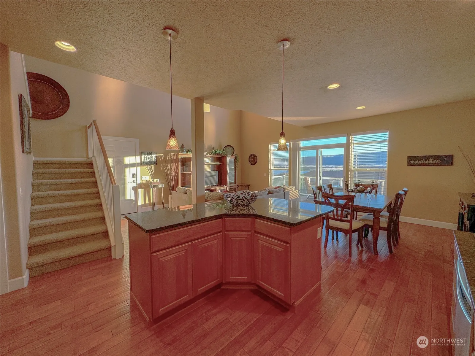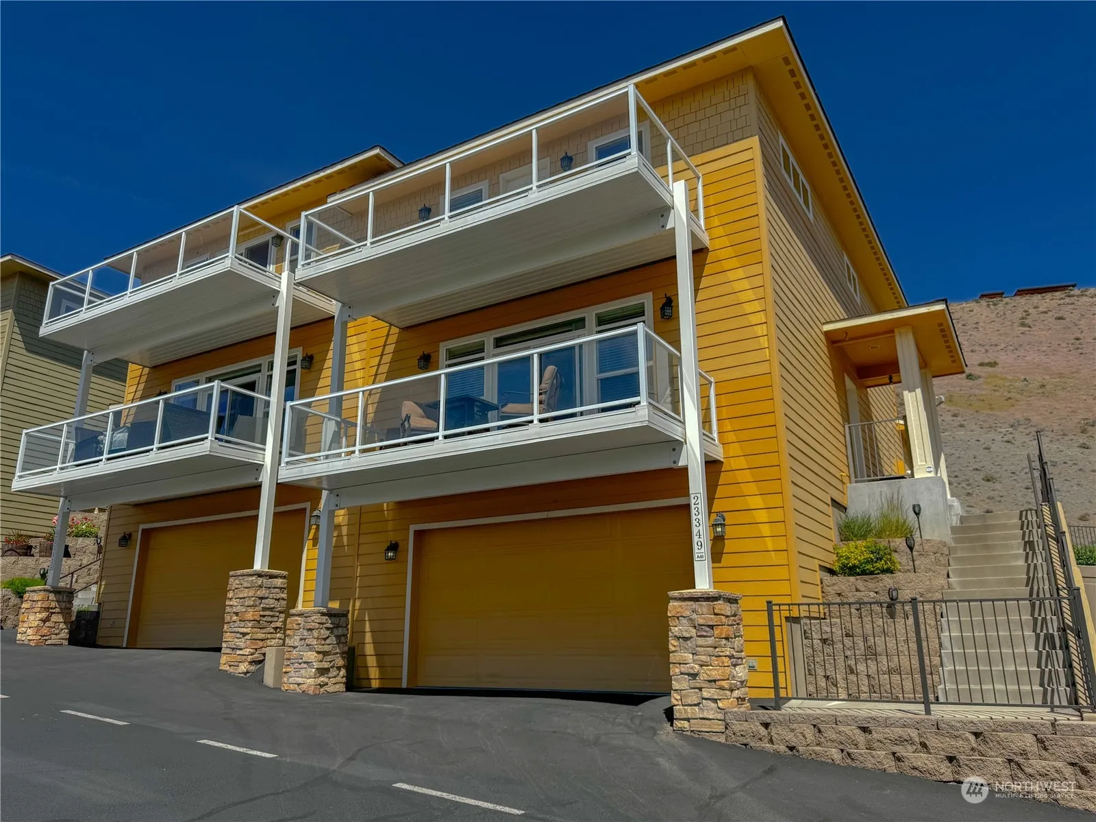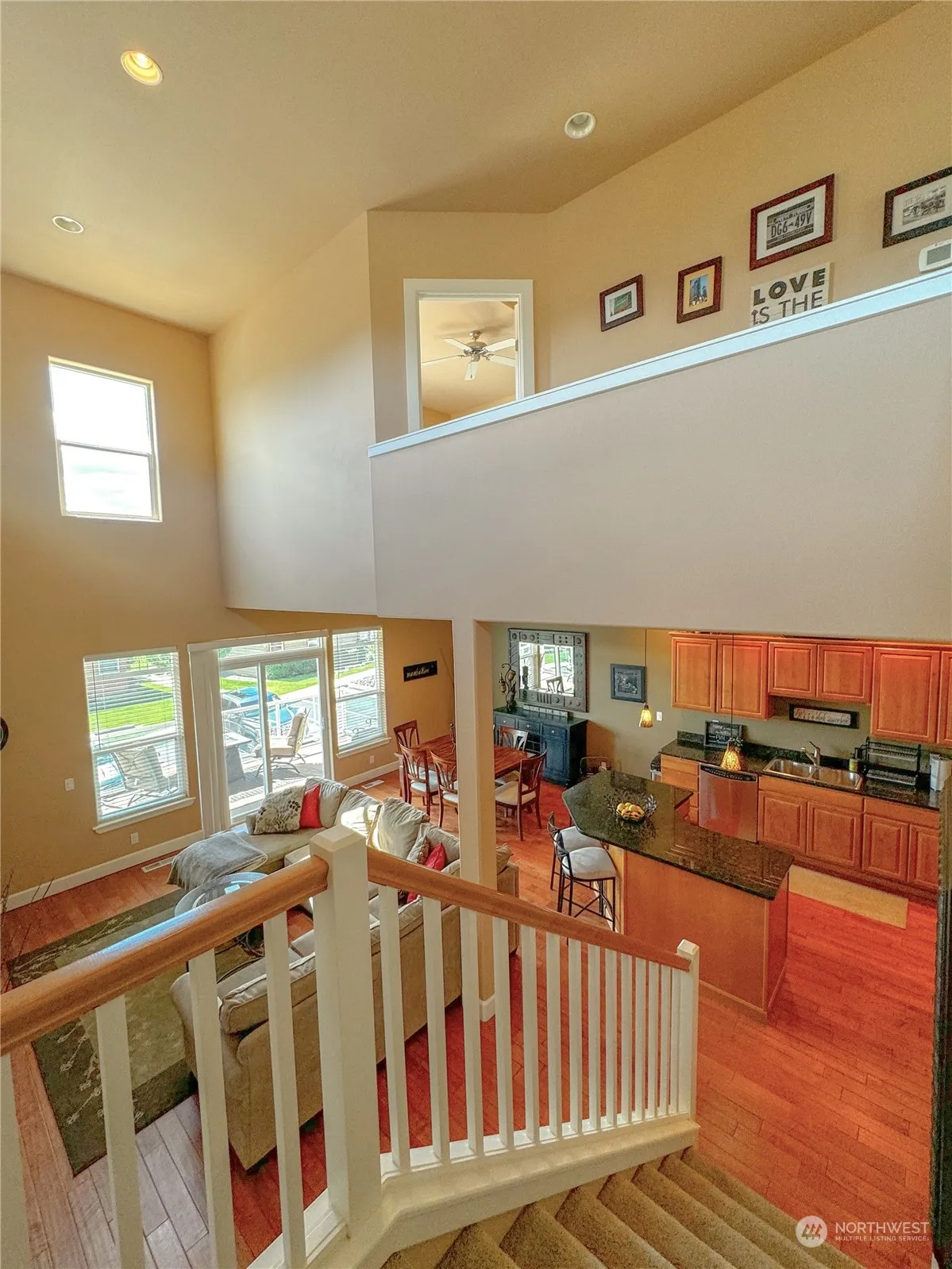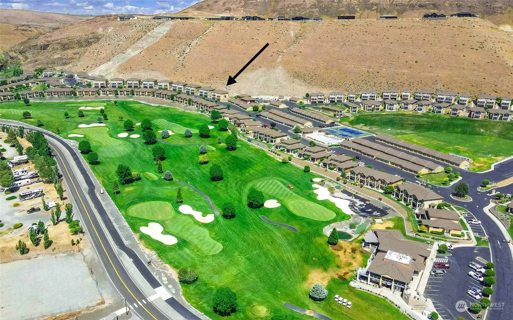 Surprising, commanding views await you in this immaculate Sunserra home!! Great room/ kitchen with soaring ceilings and walls of windows welcome you to the perfect lifestyle! A large grass backyard is ideal for an outdoor entertaining area with unobstructed views of the historic cliffs and Columbia River beyond! The main pool is steps away along with pickle ball/tennis courts, baseball field and a fenced basketball training area and your jointly owned 9 hole Executive Golf Course. Two SW facing exterior decks……one off the great room for entertaining and one deck off the primary bedroom perfect for relaxation. 2bd-2bth and 1 flex room. Huge attached 960sf garage for boats, golf carts and vehicles. Original owner now selling!