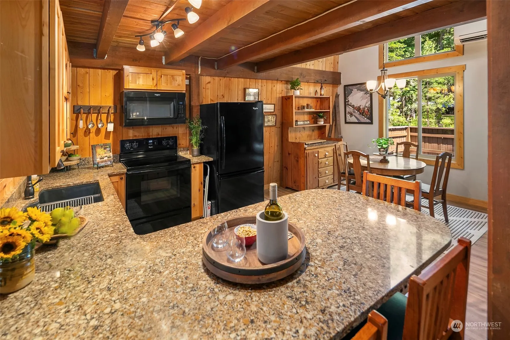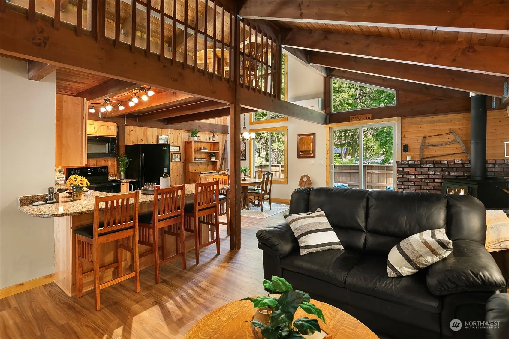Year-round access! Located in a quiet cul-de-sac in Driftwood Acres with no drive-by traffic & Lake Cle Elum beach access. Cabin has open great room w/vaulted T & G ceilings & walls. Updates over time include rustic alder, shaker style cabinetry, quartz counters, sink & faucet, lighting & Whirlpool appliances in kitchen. Newer W/D. Replaced all windows, back slider, front door, roof (main portion), decking front & back, & hot water heater. Heated w/ Mitsubishi Split & newer Blaze King wood stove. Installed solid interior wood doors, millwork & flooring throughout. Newer interior & exterior paint. 864 sq ft lower level is insulated & drywalled & has room to park 2 small/med vehicles plus tons of storage. Brand new 3 bed septic drain field!