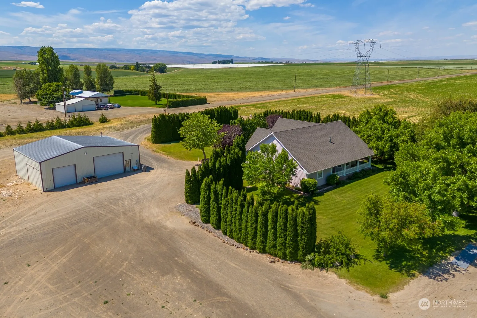 Discover a luxurious 3-bed, 2-bath home near Cave B & Gorge Amphitheatre. Features vaulted ceilings, granite kitchen w/ large island, gas fireplace, & ceiling speakers. Primary suite includes jetted tub, walk-in shower & walk in closet. Bonus room above garage. Fiber internet, covered porches, built-in vac, security system, landscaped yard with UGS. 50×40 shop w/radiant heating, fiber internet, mezzanine, workroom, walk-in freezer, blaze king fireplace, benches & shelves, while a 6×10 walk-in freezer with hanging racks adds practicality. 16X12 & 12X12 large doors facilitate easy access, and amenities like a loading ramp and fire ring enhance functionality and outdoor enjoyment. Perfect blend of comfort & functionality in a serene setting.